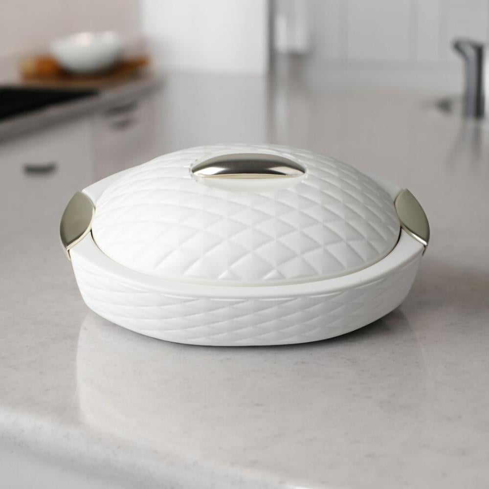 حافظة طعام بيضاوي لون أبيض فضي مطفيء مقاس 50 سم