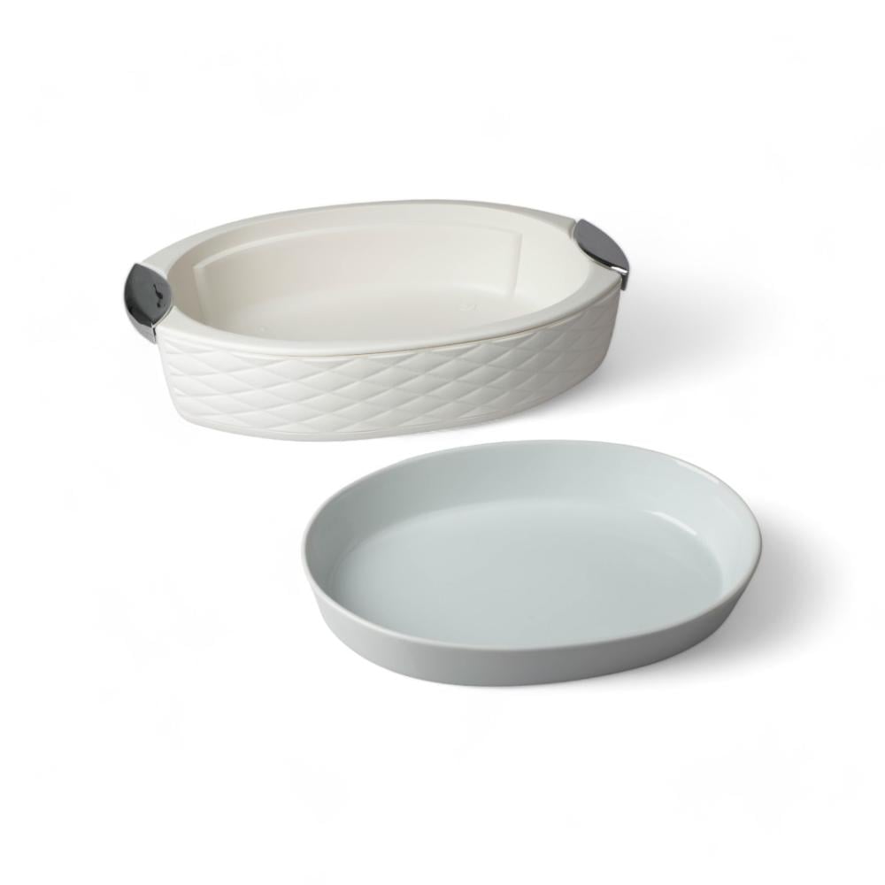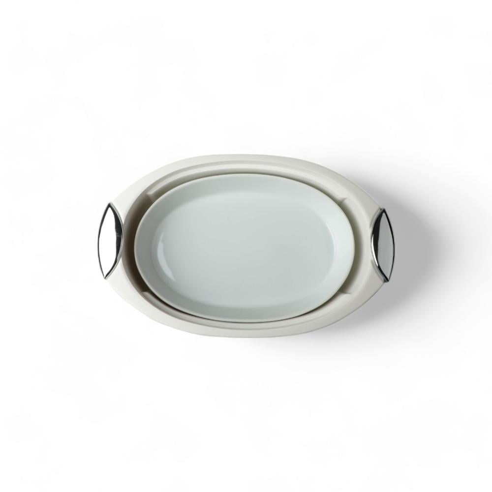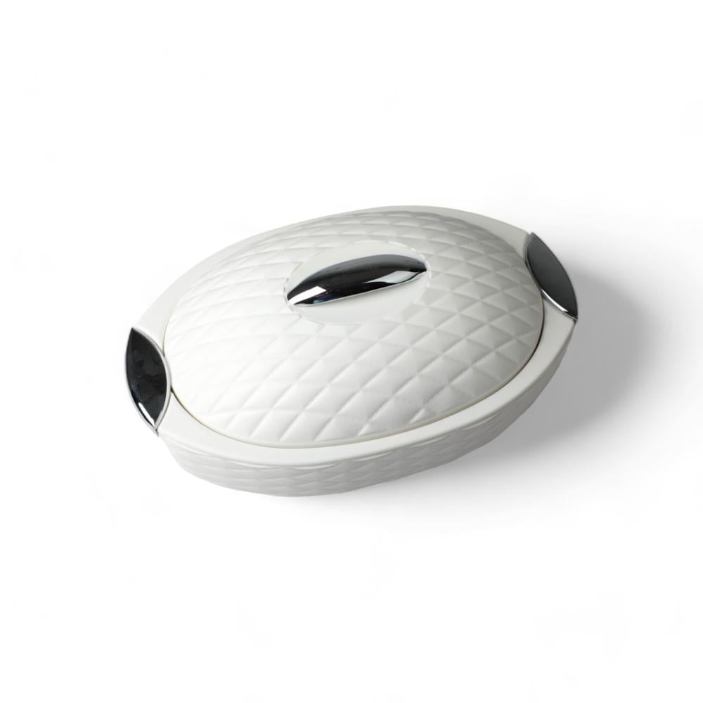 حافظة طعام بيضاوي لون أبيض فضي مقاس 45 سم