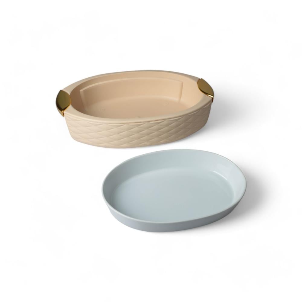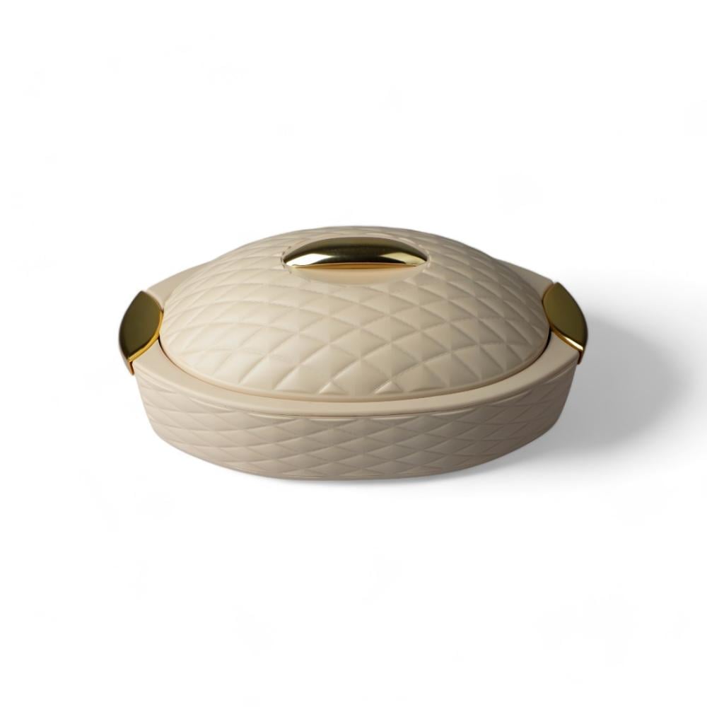 حافظة طعام بيضاوي لون بيج ذهبي مطفيء مقاس 45 سم