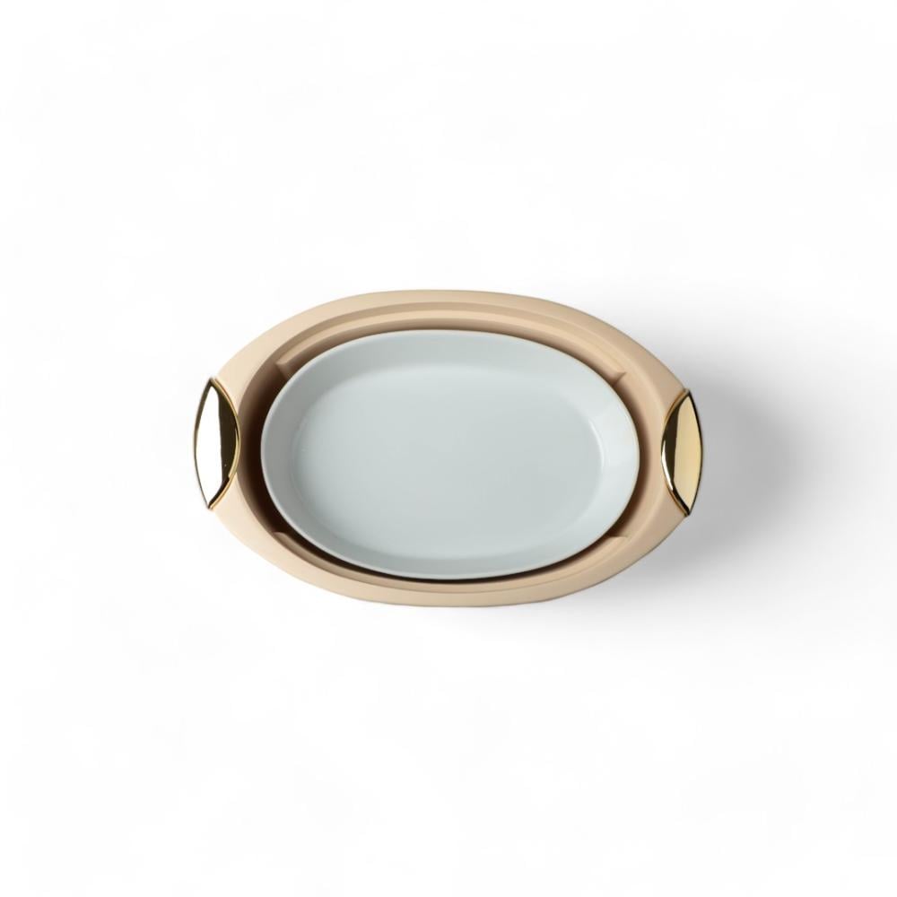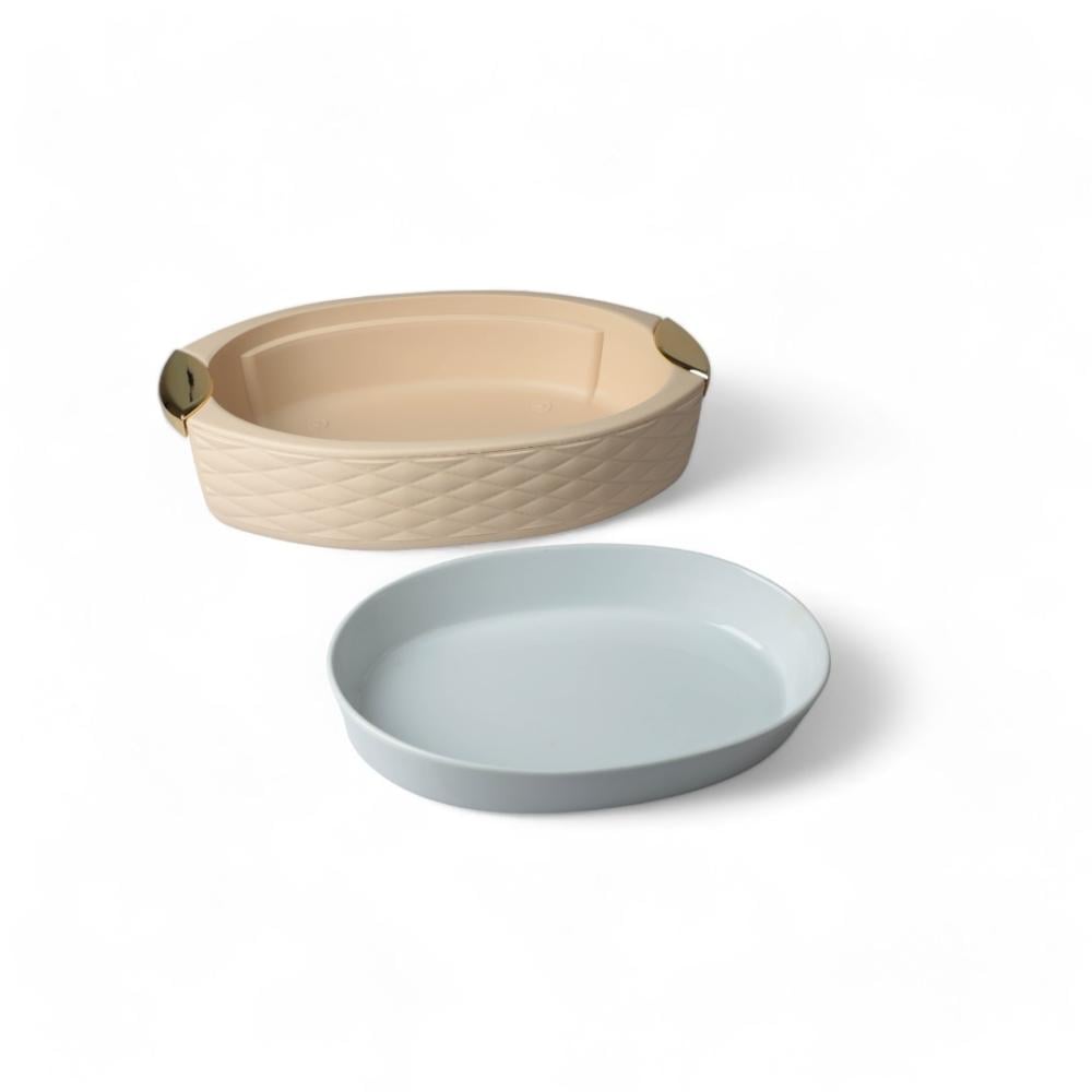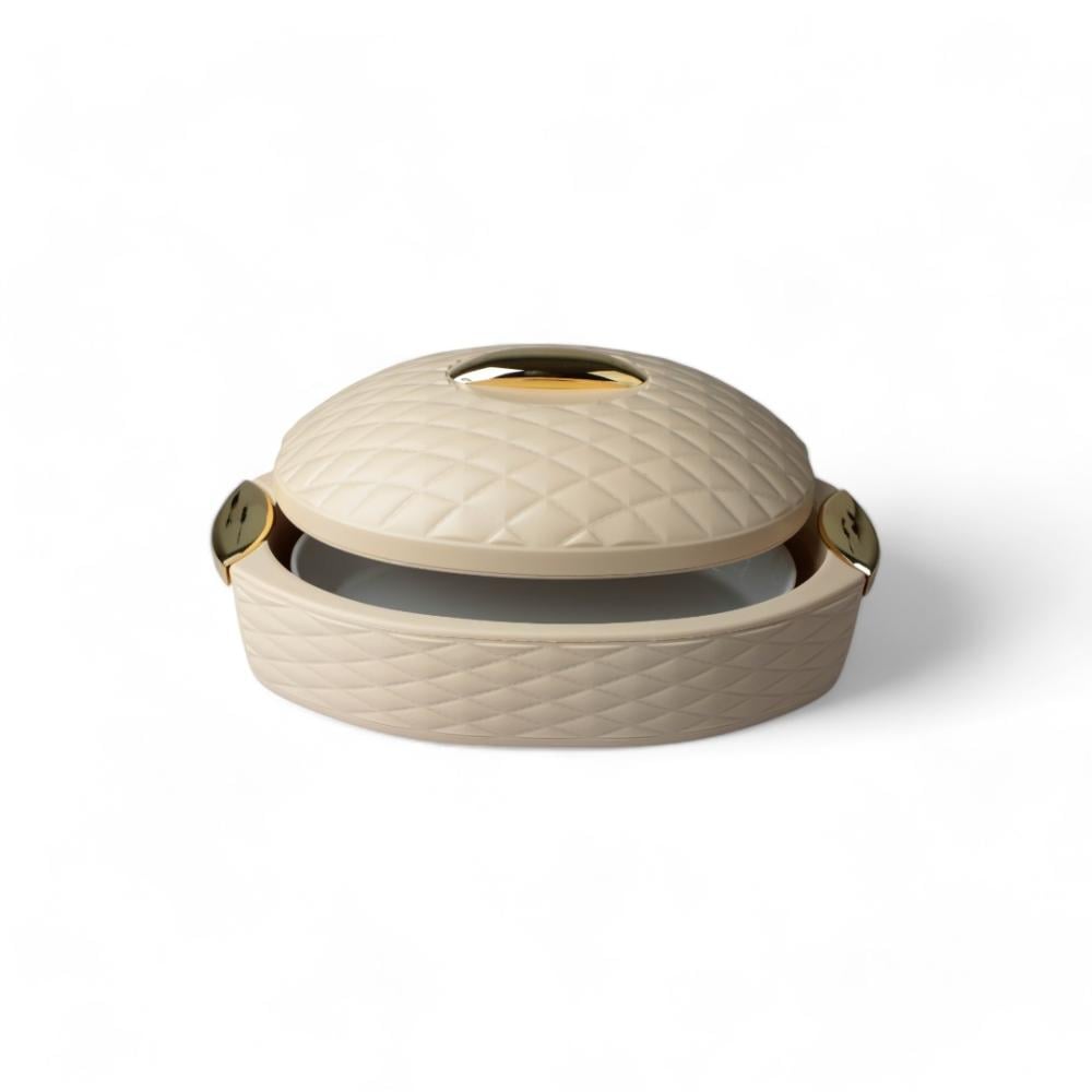 حافظة طعام بيضاوي لون بيج ذهبي مقاس 41سم