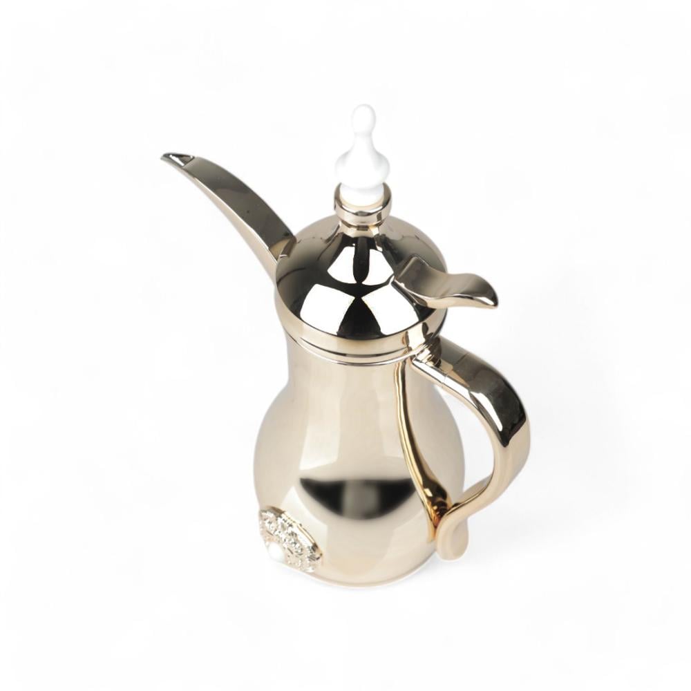 دلة قهوة من سولتير 0.5 لتر، اللون ذهبي & بحجر أبيض