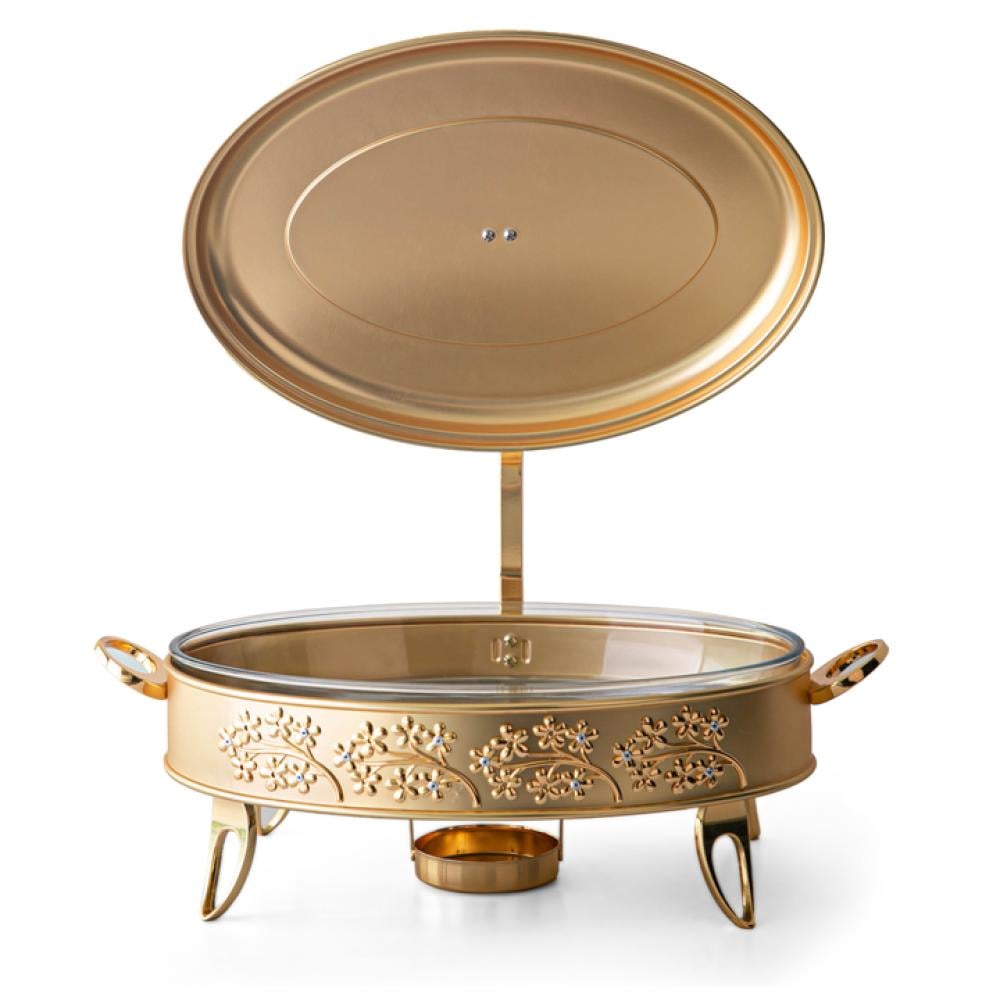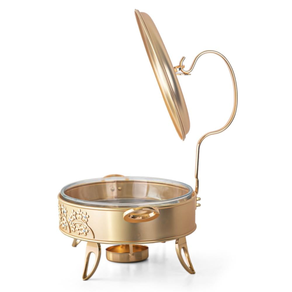 اجعلي هذا السخان الراقي هو اختيارك في موائد العشاء الفاخرة، مصمم بشكل أنيق، بلون ذهبي مطفي ساحر يعزز من مظهره، مصنوع من الاستيل الفاخر، ذو غطاء وحامل سخّان يضمن لك بقاء الطعام دافئًا وطازجًا مدة طويلة.