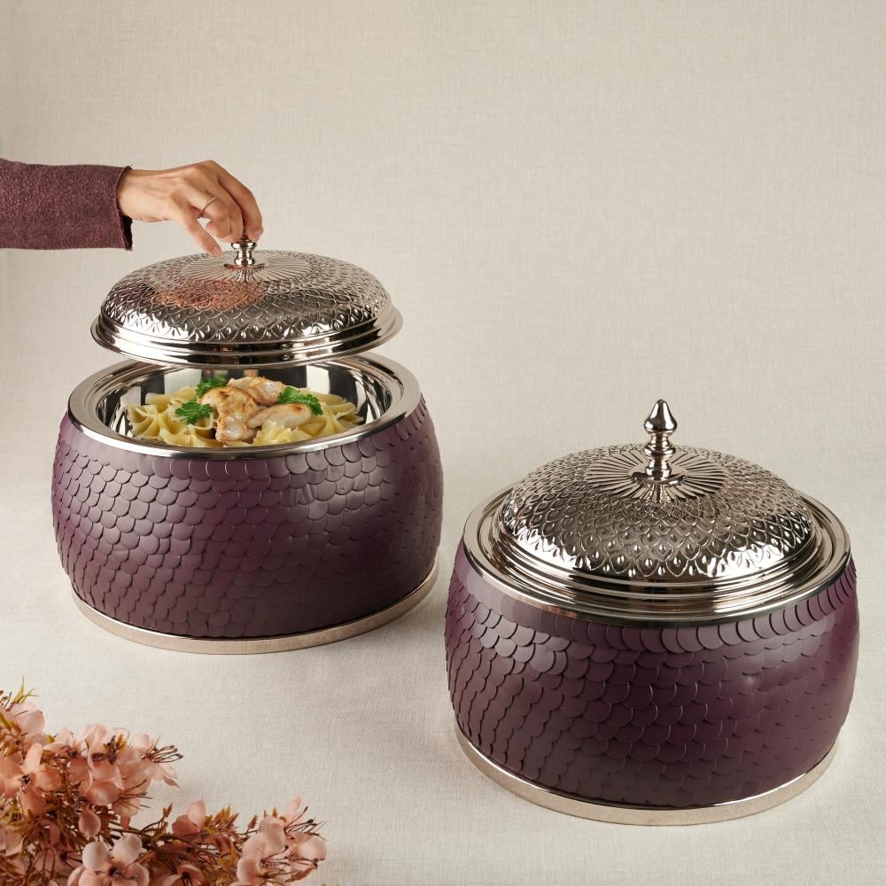 سخان الطعام الهندي المدور يعتبر قطعة أساسية للحفاظ على دفء الطعام وتقديمه بأفضل حالاته، ويضيف لمسة من التقاليد والأناقة إلى أي مناسبة أو وجبة.