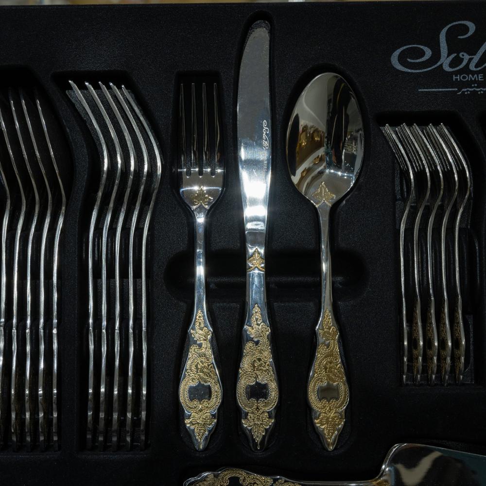 شنطة ملاعق وشوك من سولتير طقم 72 حبة، لون فضي بنقوش ذهبي