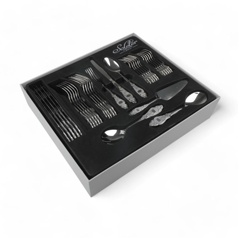 شنطة ملاعق وشوك من سولتير طقم 72 حبة، لون فضي بنقوش