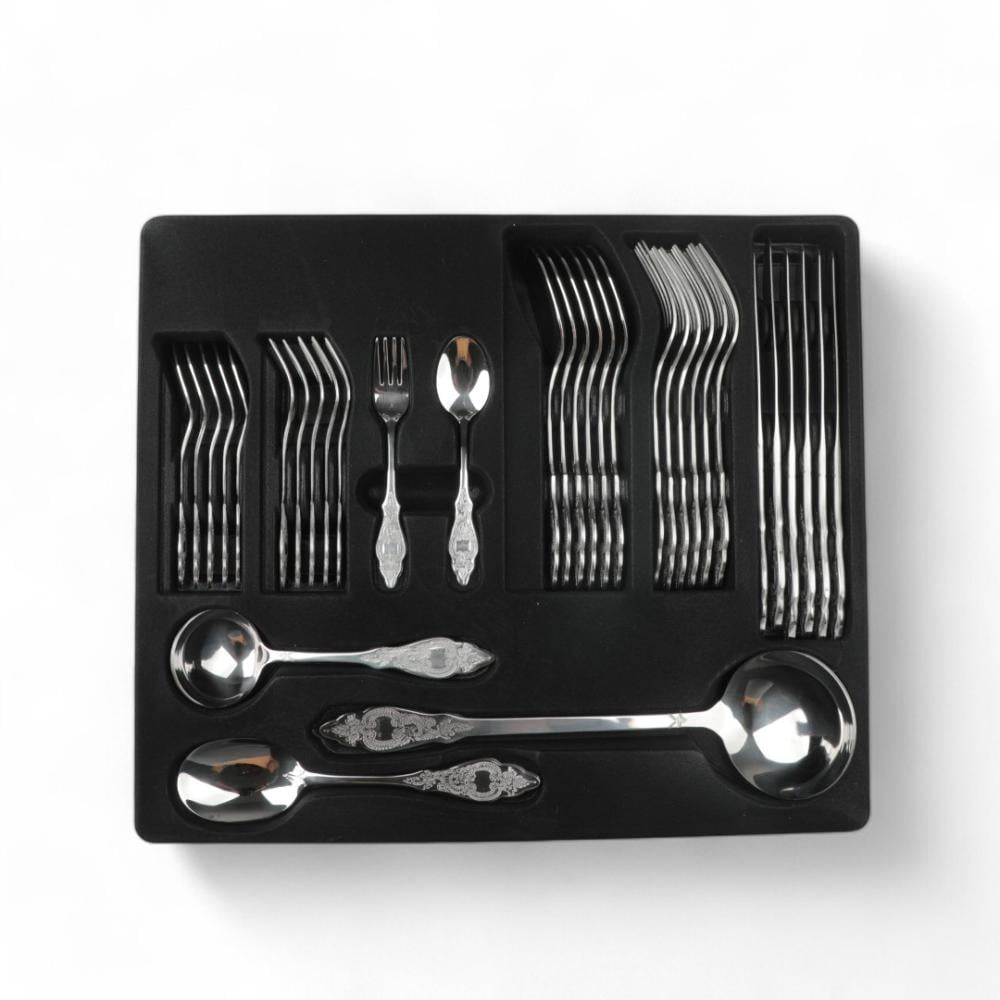 طقم ملاعق يخدم 12 أشخاص بعناية، يمكنك إضفاء لمسة من الأناقة والرفاهية على تجمعاتك ووجباتك العائلية.