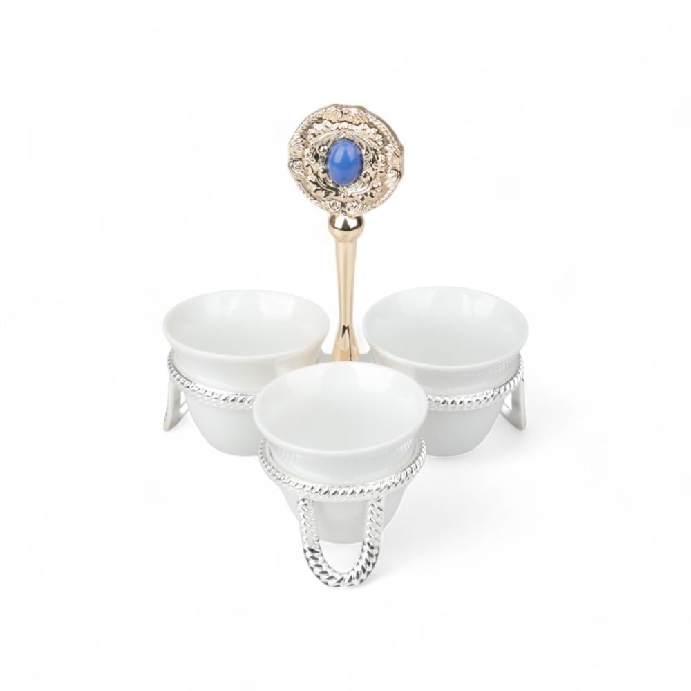 شيال فناجين كوين 3 حبات من سولتير، اللون فضي & ذهبي أزرق, العرض 13سم, الإرتفاع 15.5سم