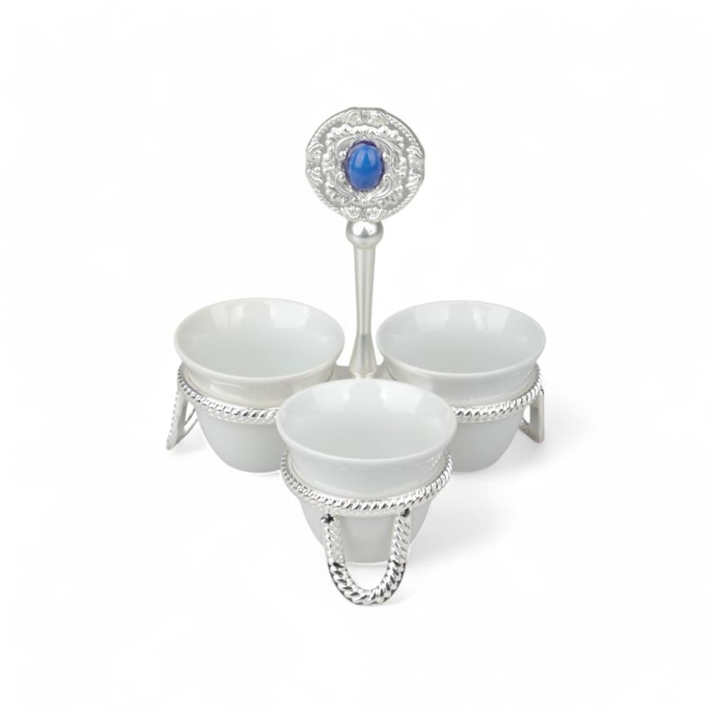 شيال فناجين كوين 3 حبات من سولتير، اللون فضي مطفي & أزرق, العرض 13سم, الإرتفاع 15.5سم