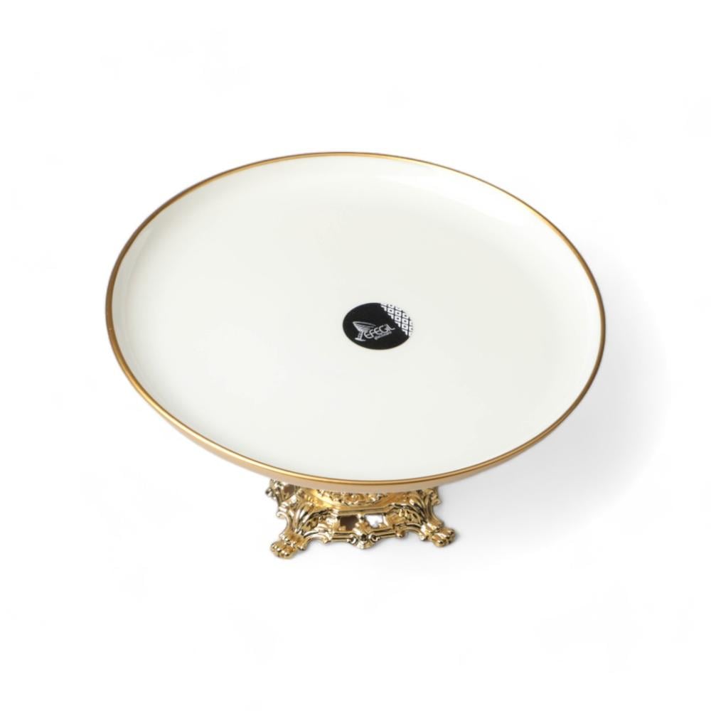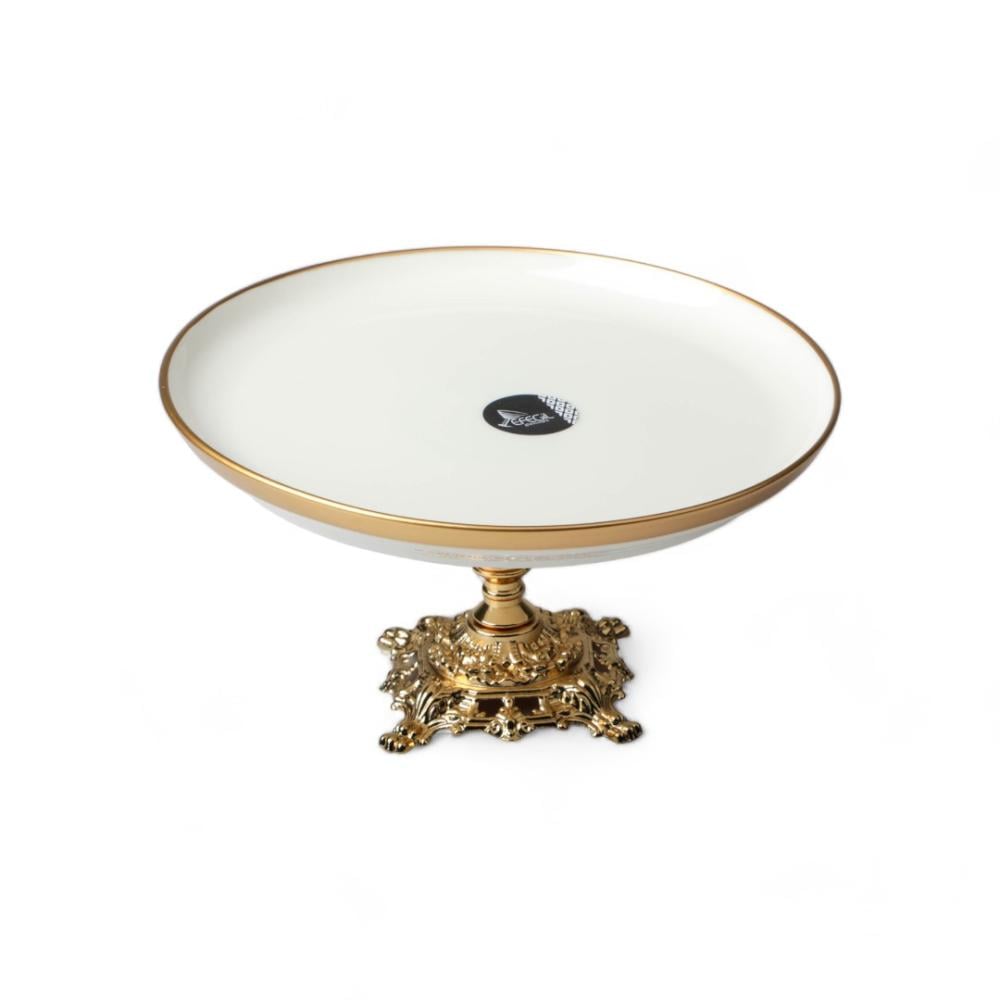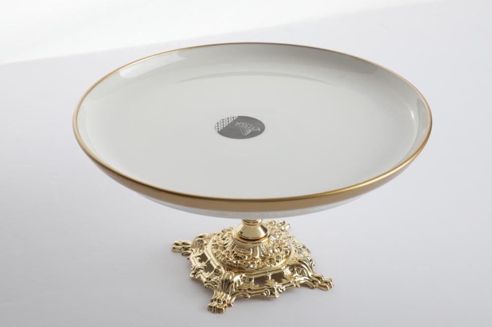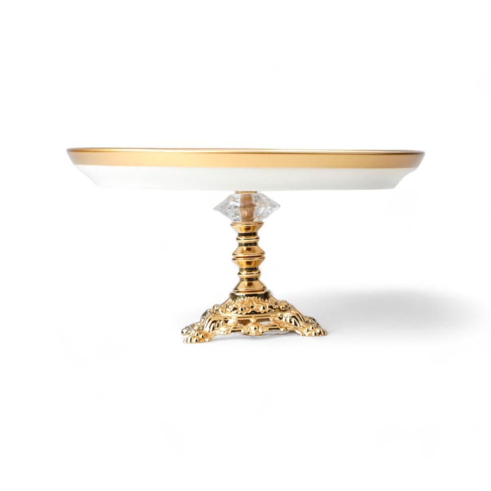 صحن تقديم فاخرة بقاعدة مرتفعة، ذهبي حجم كبير