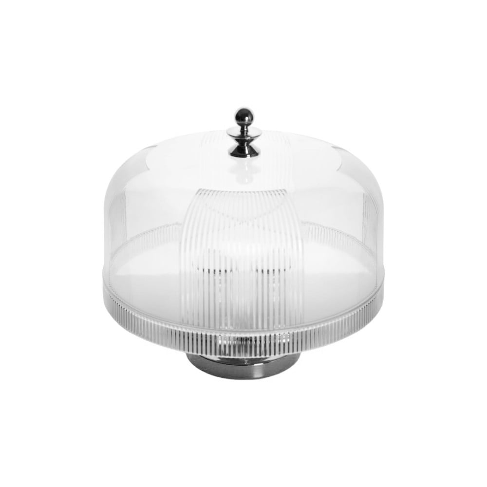 صحن تقديم كيك  من الاكريليك الفاخر بقاعدة فضي شفاف , القطر 35 سم من سوليتير
