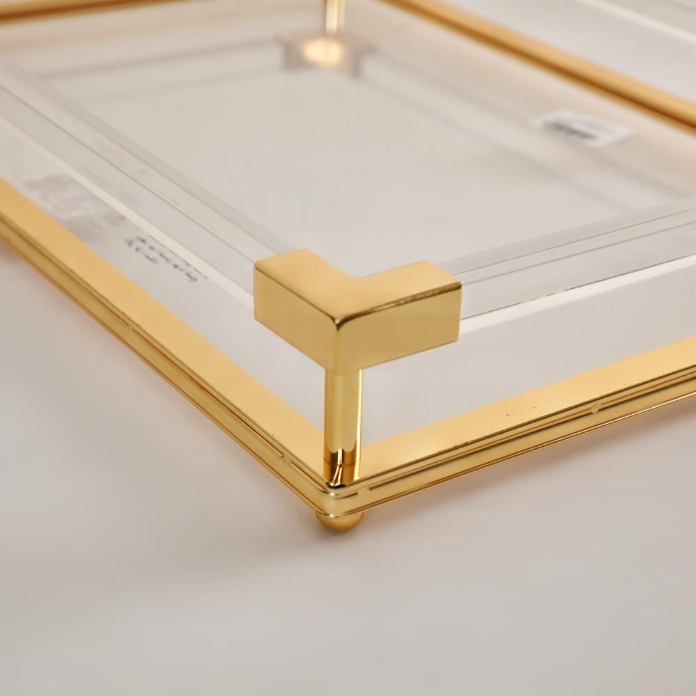 صينية تقديم أكريليك من سوليتير , اللون شفاف ذهبي , الحجم وسط , الابعاد 45x30 سم , الشكل مستطيل