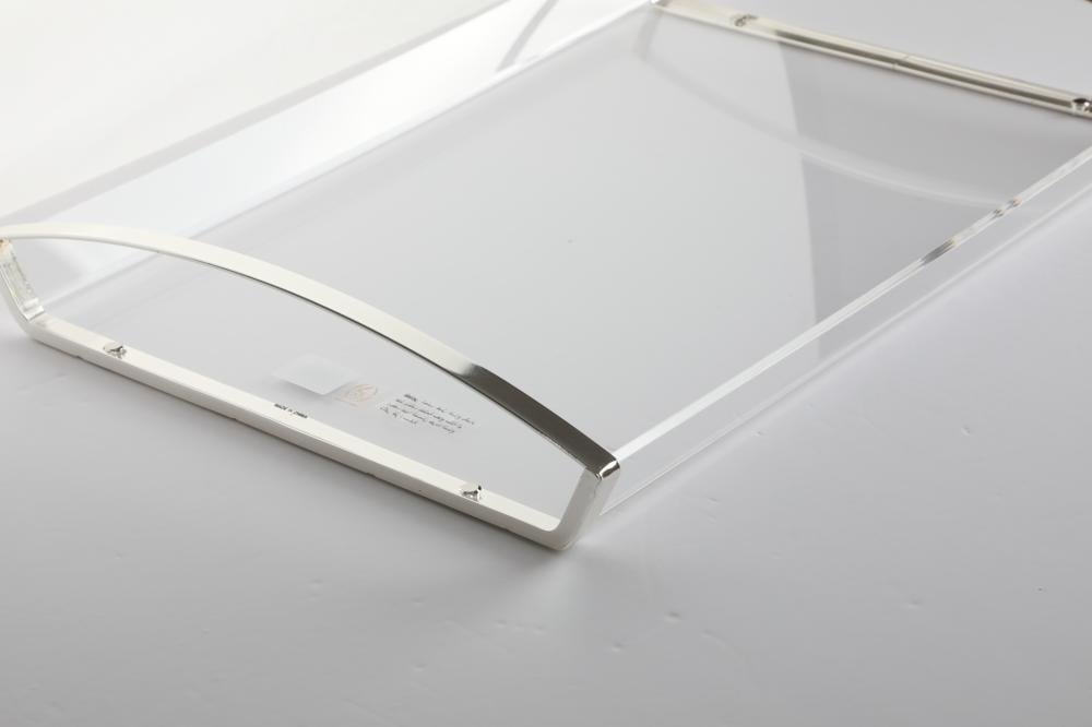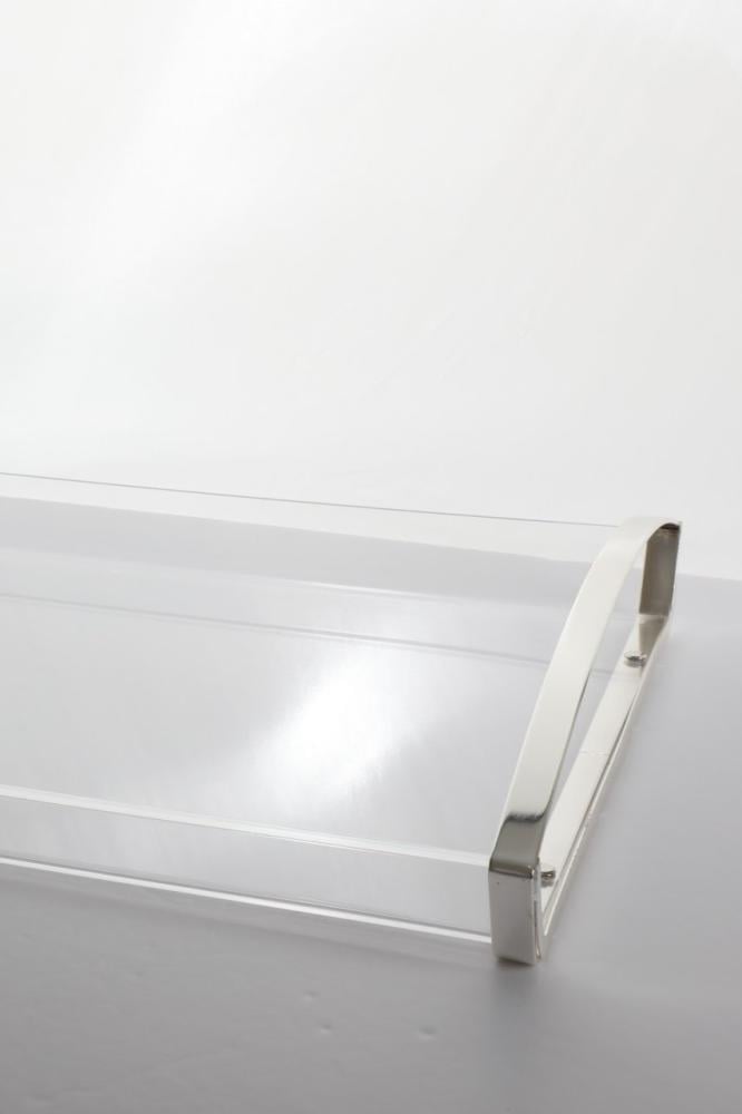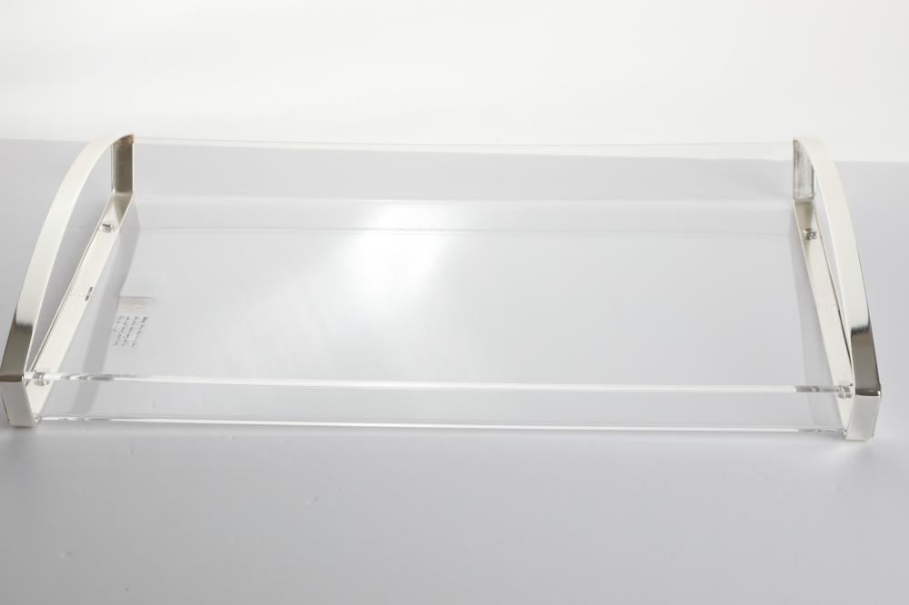 صينية تقديم أكريليك من سوليتير, لون فضي وشفاف, حجم كبير الابعاد 49x37 سم, الشكل مستطيل