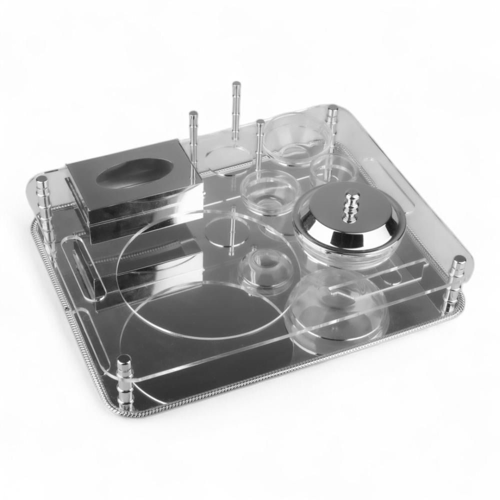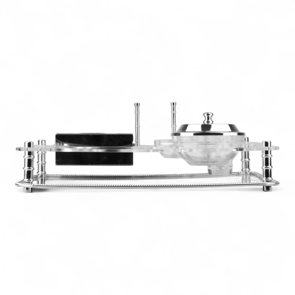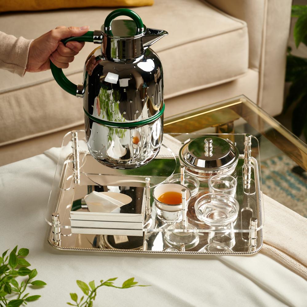 ا ستمتعي بتقديم الضيافة بأسلوب راقٍ وفاخر مع طقم الضيافة المميز باللون الفضي . هذا الطقم المصمم بعناية يضفي لمسة من الأناقة والتميز على مائدتك ويجعل ضيوفك يشعرون بالترحاب والاهتمام.