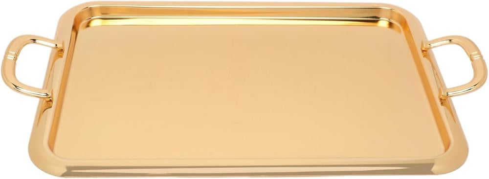 صينية تقديم معدنية من سوليتير , حجم كبير , لون ذهبي غامق كامل, الشكل مستطيل , الابعاد 42 57x , وزن المنتج 2 كغ
