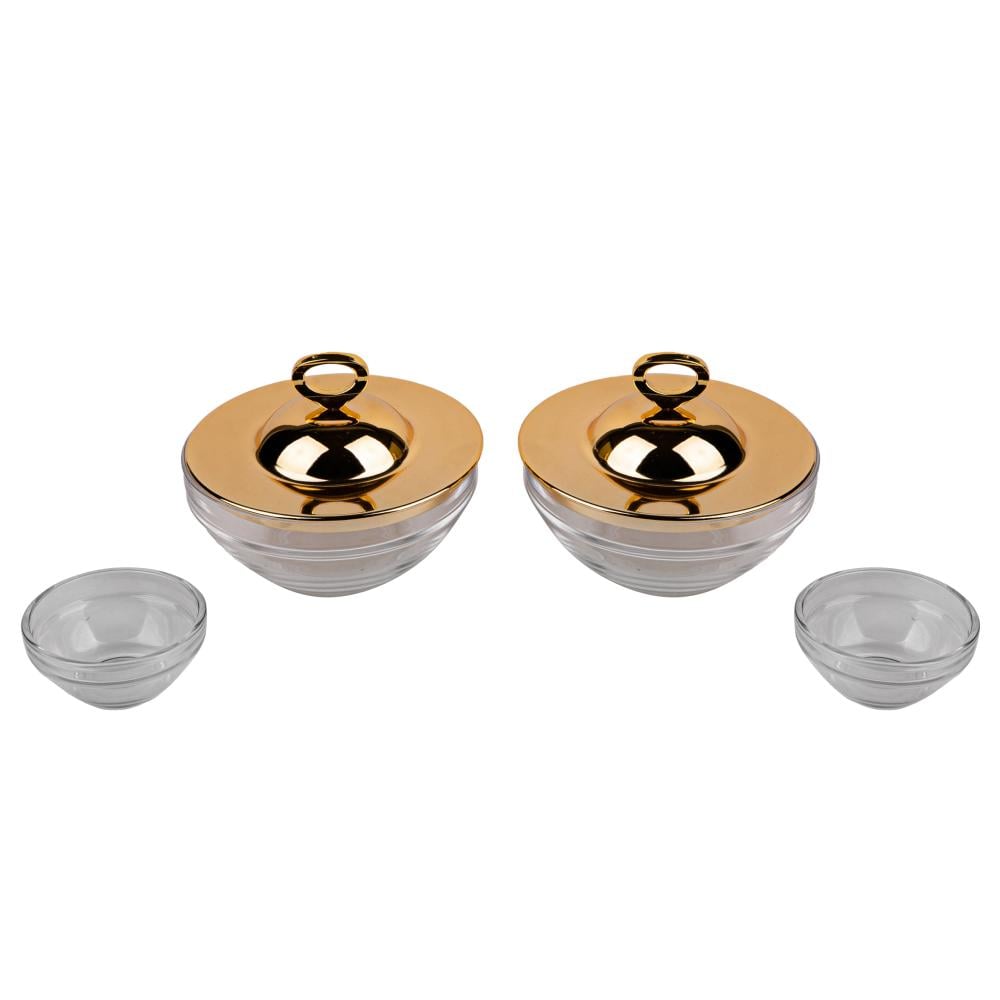 طقم الضيافة فردي لون ذهبي أبيض من سوليتير , عدد القطع 4 ( أوعية زجاجية وحامل للمناديل و أغطية باللون الذهبي) , الأبعاد 22*30*6 سم