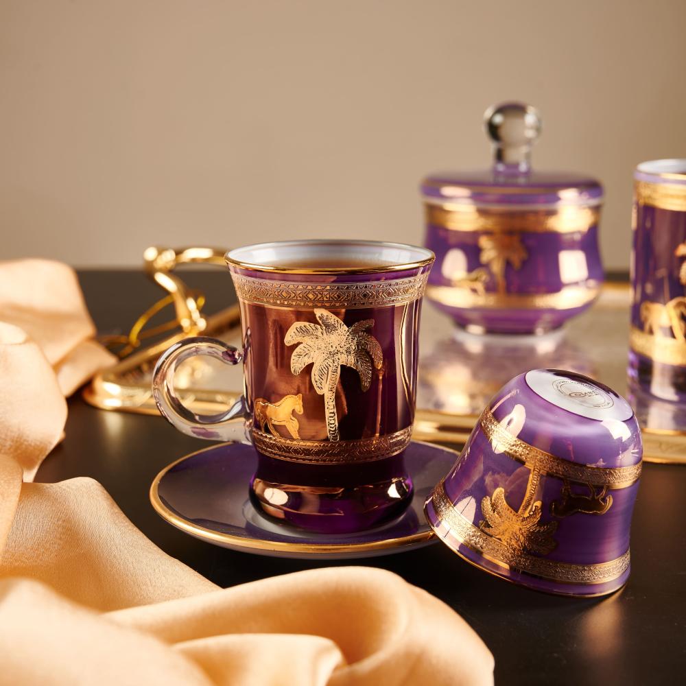 طقم بيالات شاي كومبي، لون بنفسجي وذهبي، طقم مكون من 6 قطع
