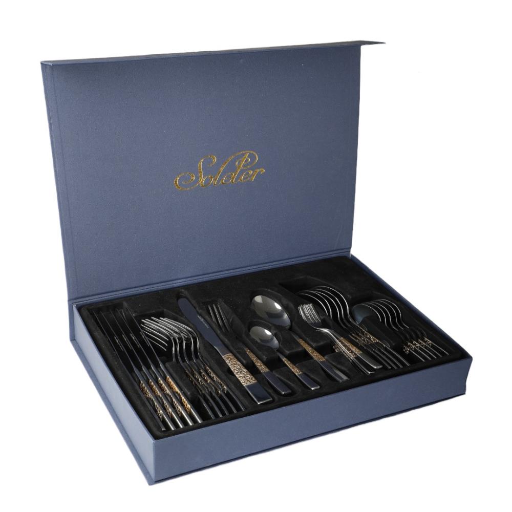 طقم سفرة مكون من 32 قطعة مع شنطة ملاعق ولباد 6 قطع , لون أزرق فاتح