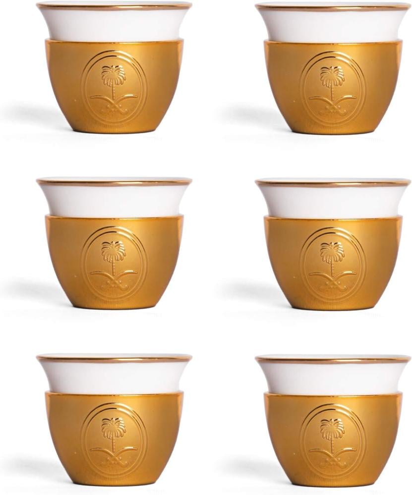 طقم فناجين قهوة سعودية لون أبيض ذهبي طقم من 6 قطع