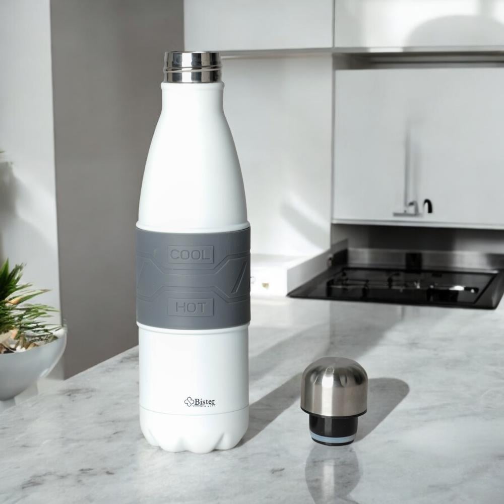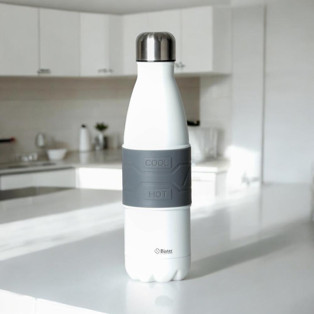 عبوة ماء من الستانلس ستيل المقاوم للصدأ من بيستر، سعة 500 مل - لون أبيض ، للمكتب، المدرسة، الجامعة، الصالة الرياضية، تحافظ على المشروبات باردة وساخنة.