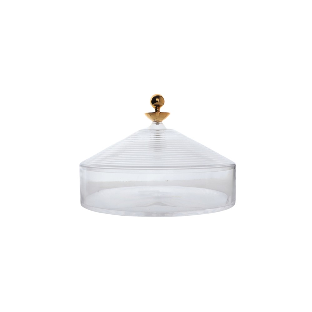 علبة تقديم حلوى شفاف حجم صغير دائري الشكل، القطر 18 سم العمق 5 سم