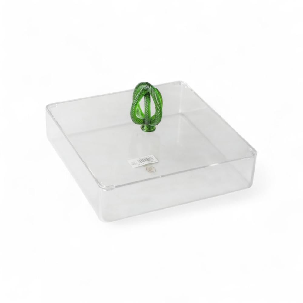 علبة تقديم سنيك أكريليك من سوليتير، لون شفاف وأخضر، حجم كبير مربع