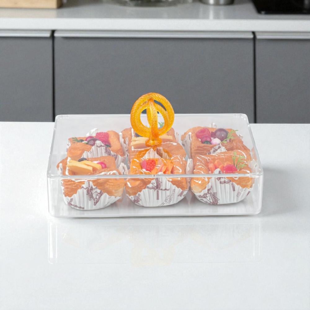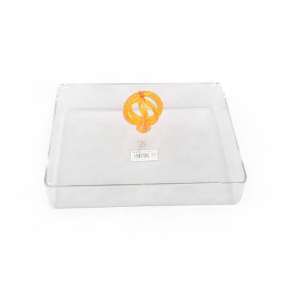 علبة تقديم سنيك أكريليك من سوليتير، لون شفاف وعنبر، حجم كبير مستطيل