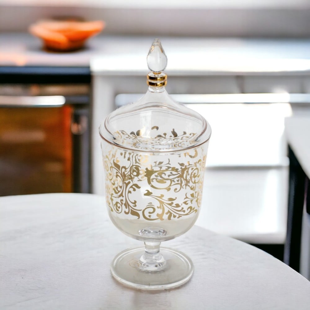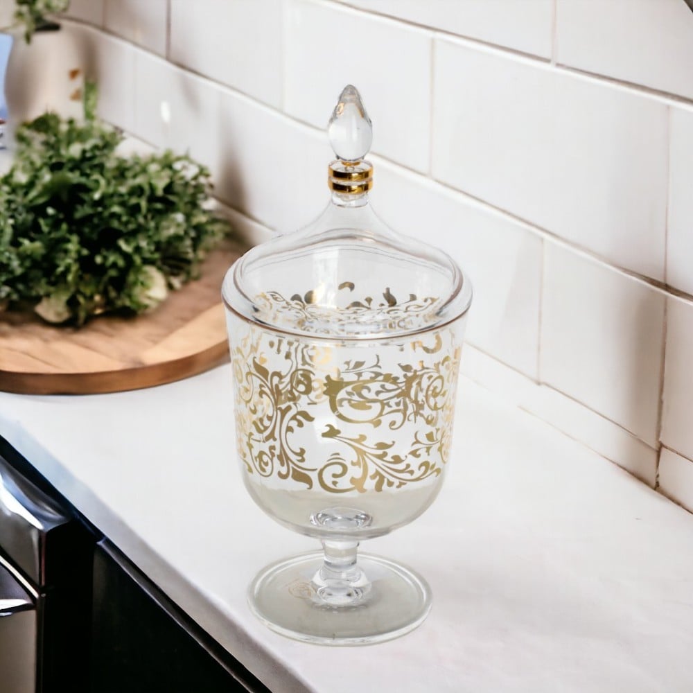 علبة حلويات أكريليك من سوليتير، لون شفاف بنقوش ذهبي، حجم 14 سم