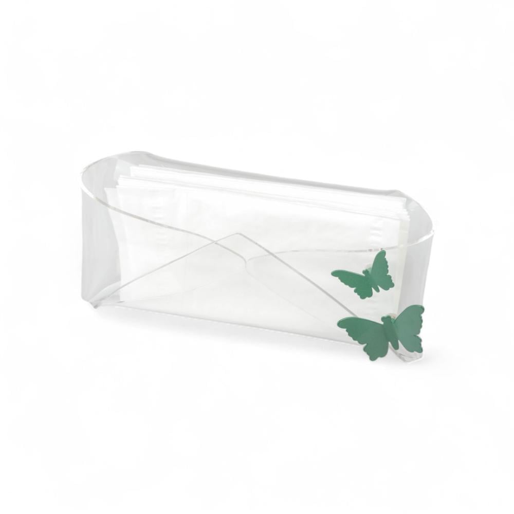 علبة مناديل الفراشة أكريليك، اللون شفاف وأخضر، حجم كبير
