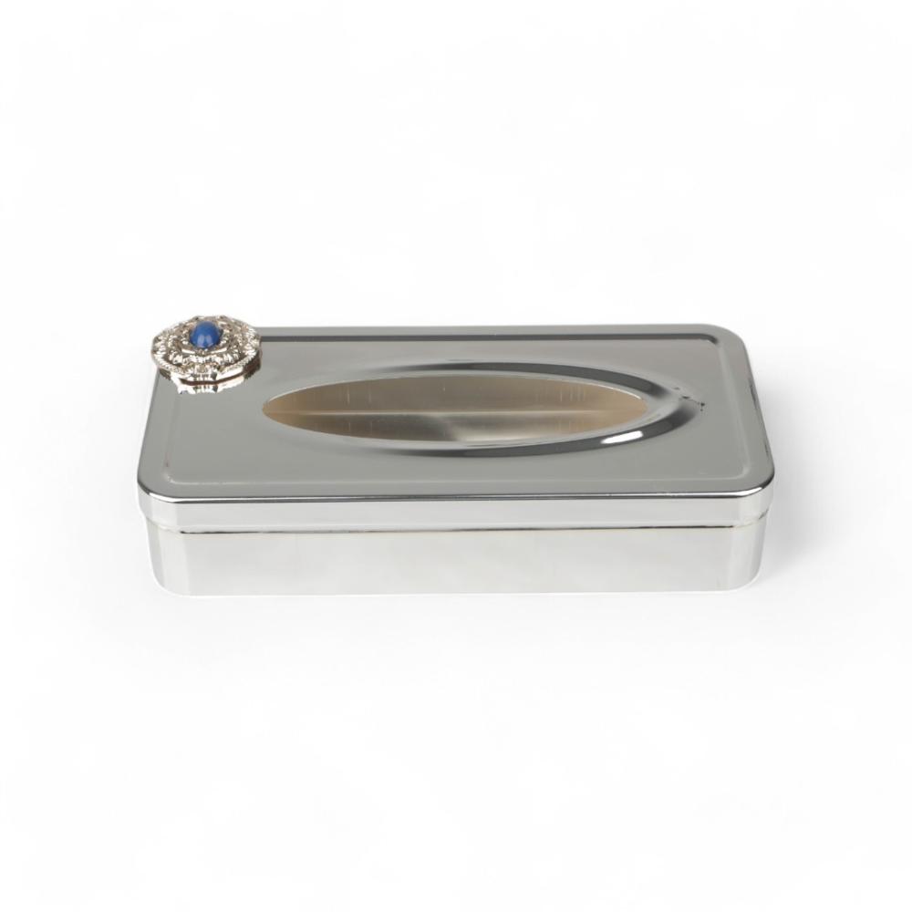 علبة مناديل كوين من سوليتير، اللون فضي ذهبي & أزرق, الطول 26سم, العرض 13سم, الارتفاع 6سم