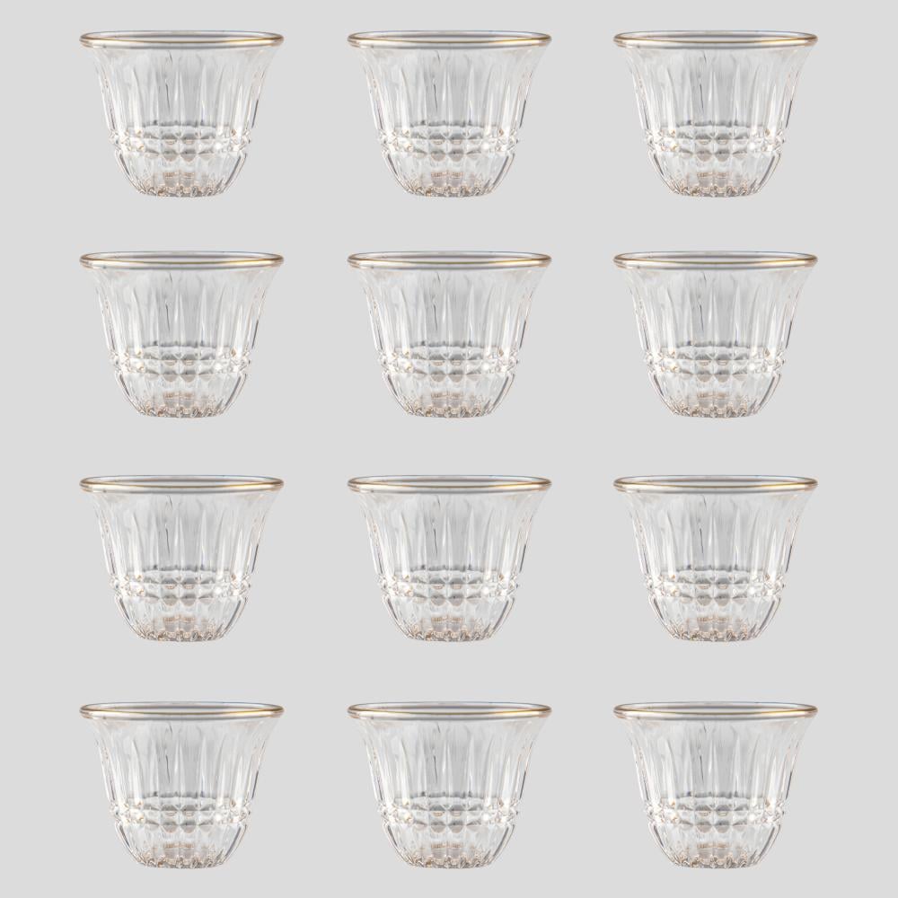 فناجين كريستال بحواف ذهبية من سوليتير , مكون من 12 قطعة