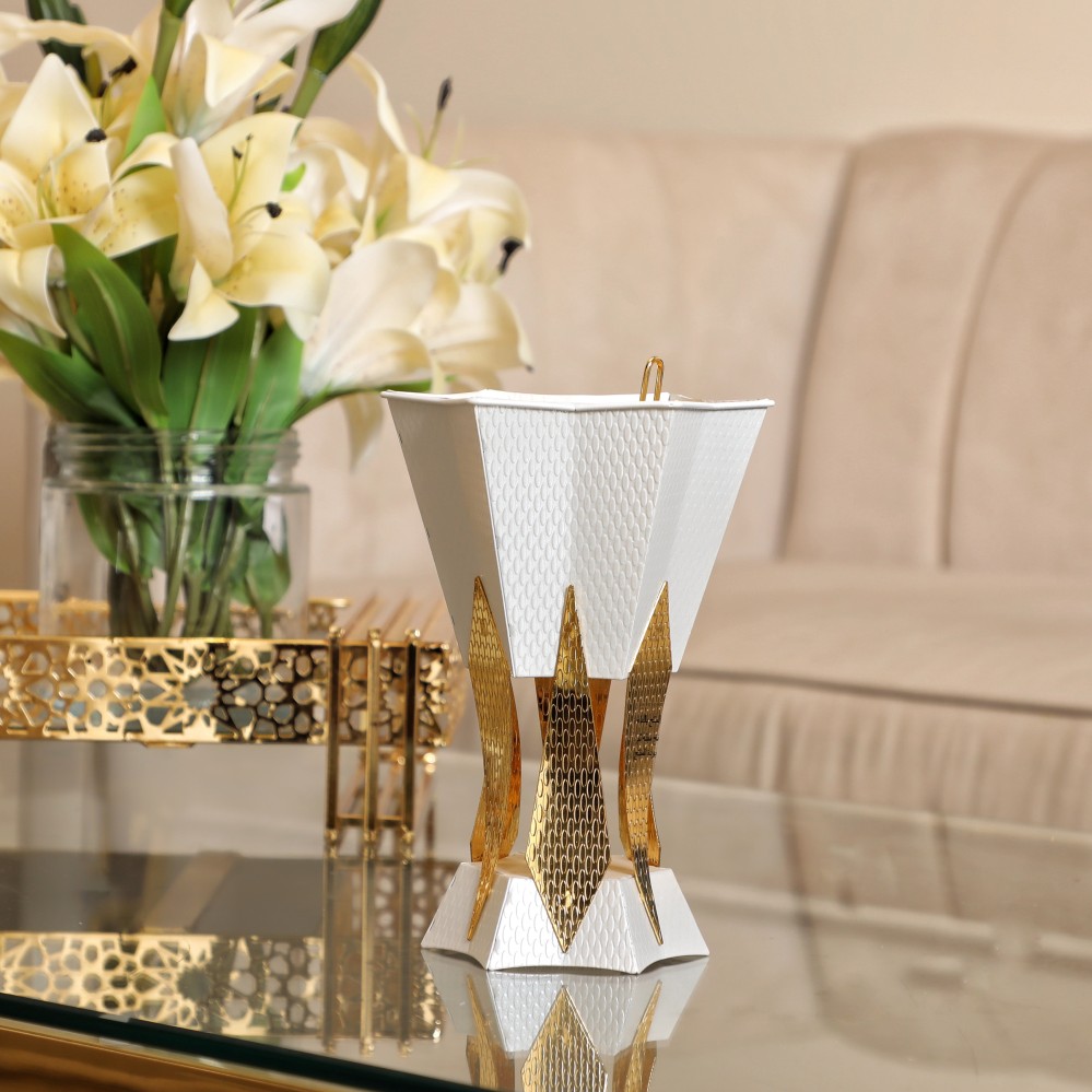 مبخرة العود باللون ذهبي و الأبيض اللامع حجم صغير .