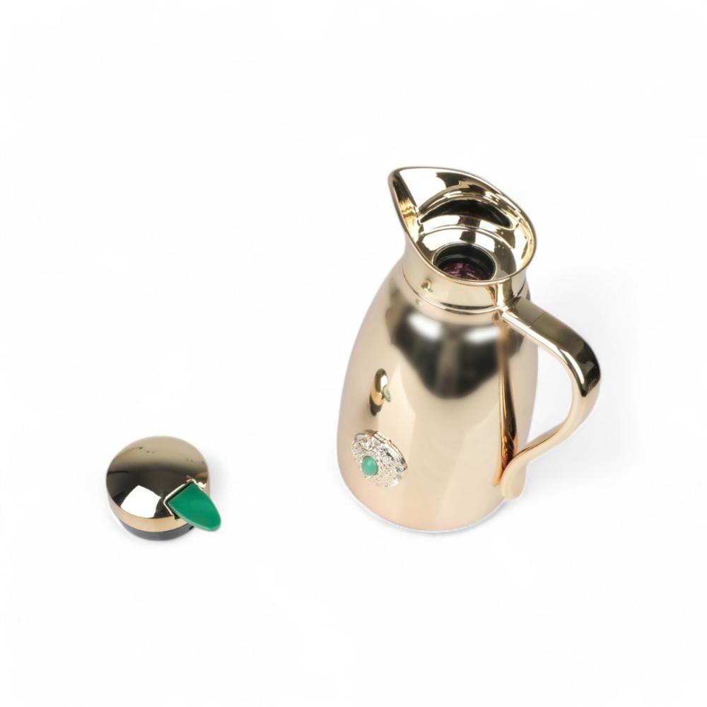 ترمس كوين من سوليتير، لون ذهبي بحجر أخضر، سعة 1 لتر