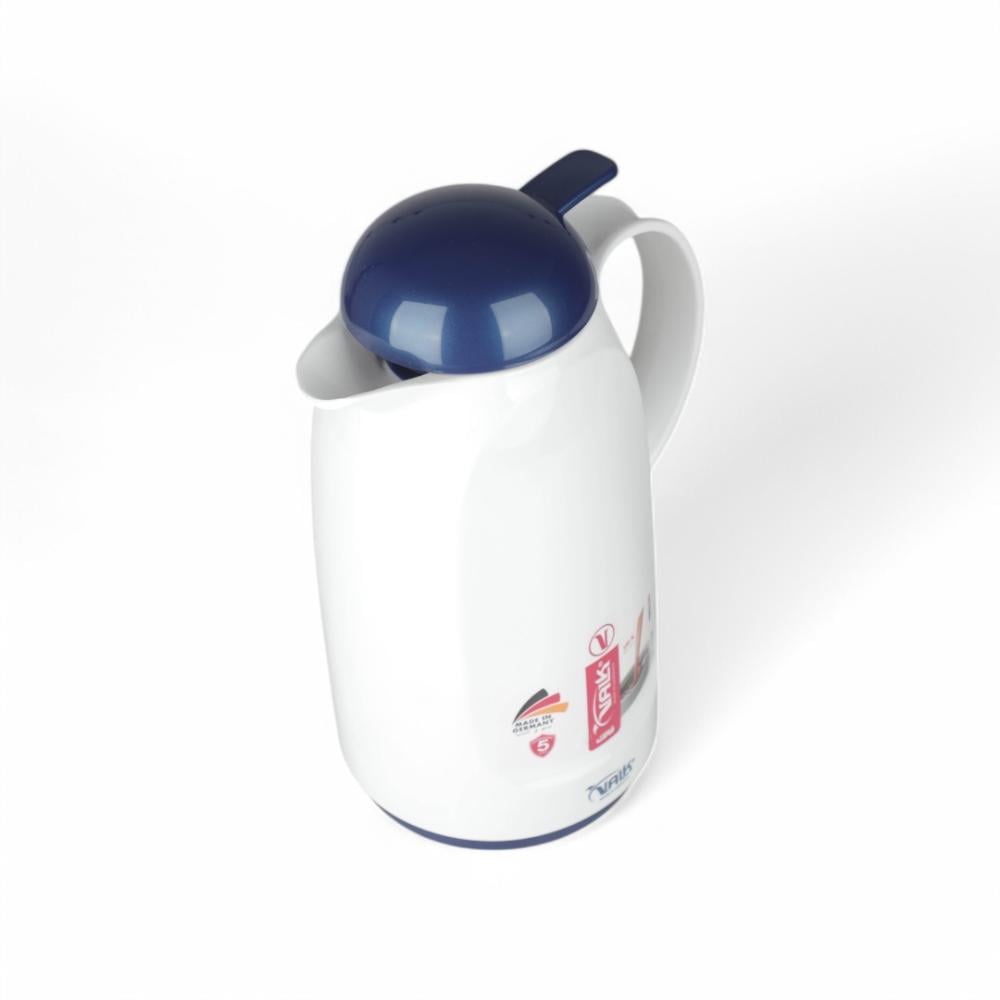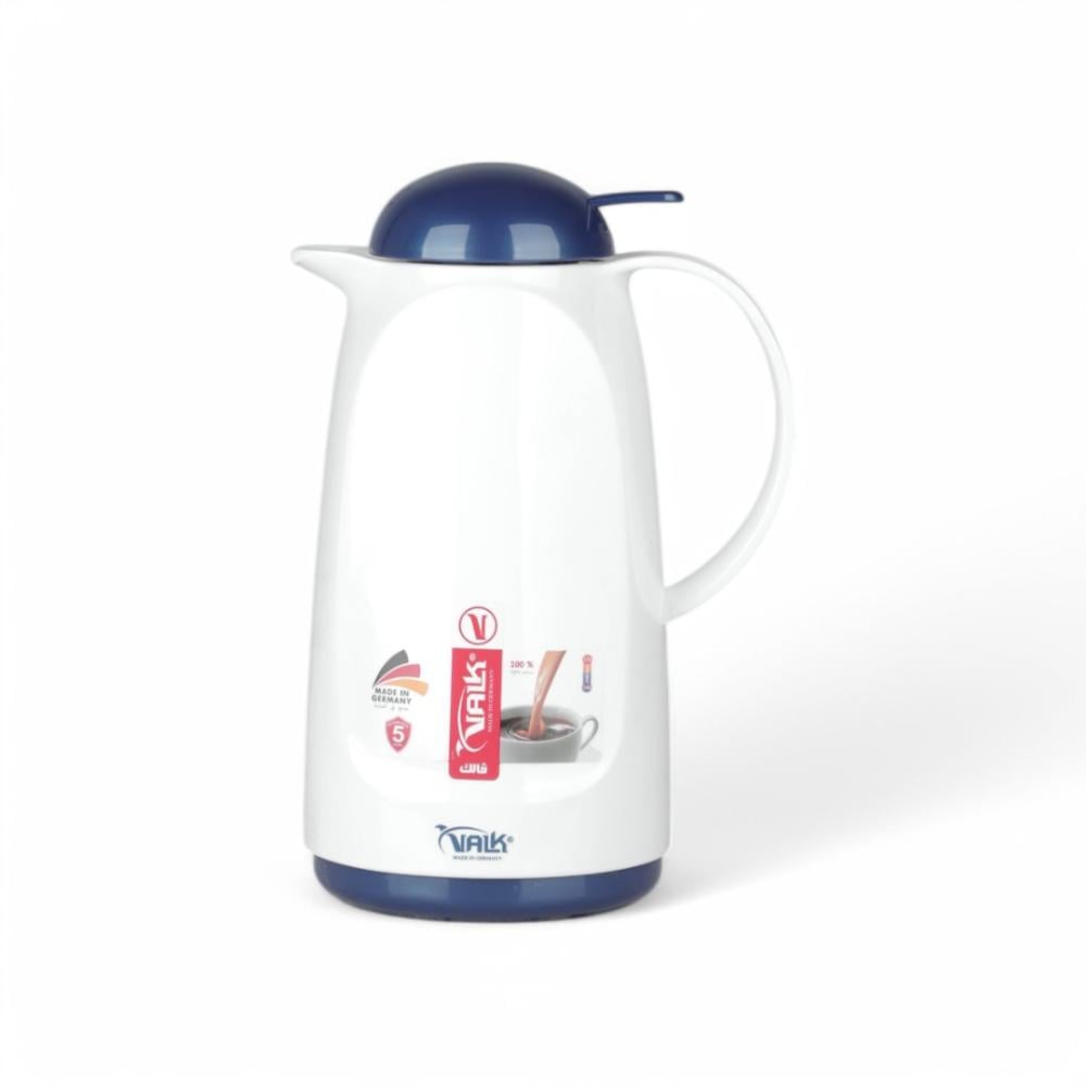ترمس VALK ألماني ضغاط، اللون أبيض وأزرق، السعة 1 لتر