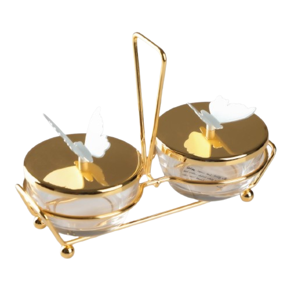 تمرية مع حامل و غطا على شكل فراشة من سوليتير ،  لون ذهبي أبيض فطر  9 سم