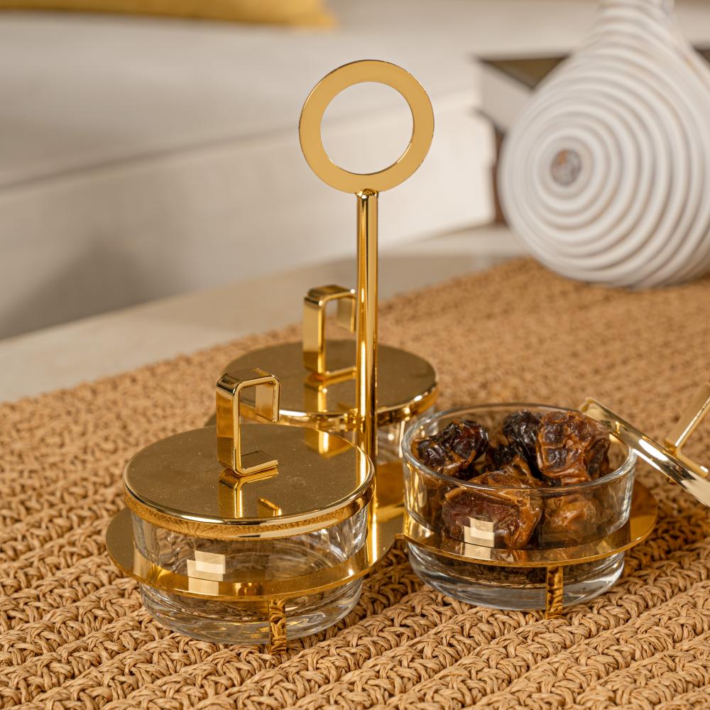 المكون من 3 تمريات بغطاء مع حامل ، فهي ليست مجرد أداة لتقديم التمر، بل هي قطعة فنية تضيف جمالًا وسحرًا لأي مناسبة