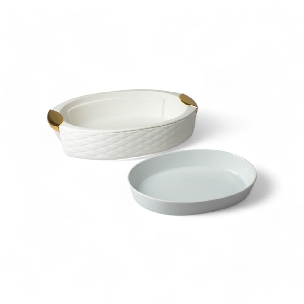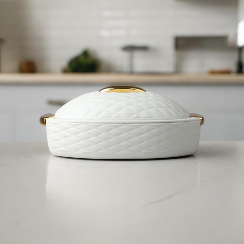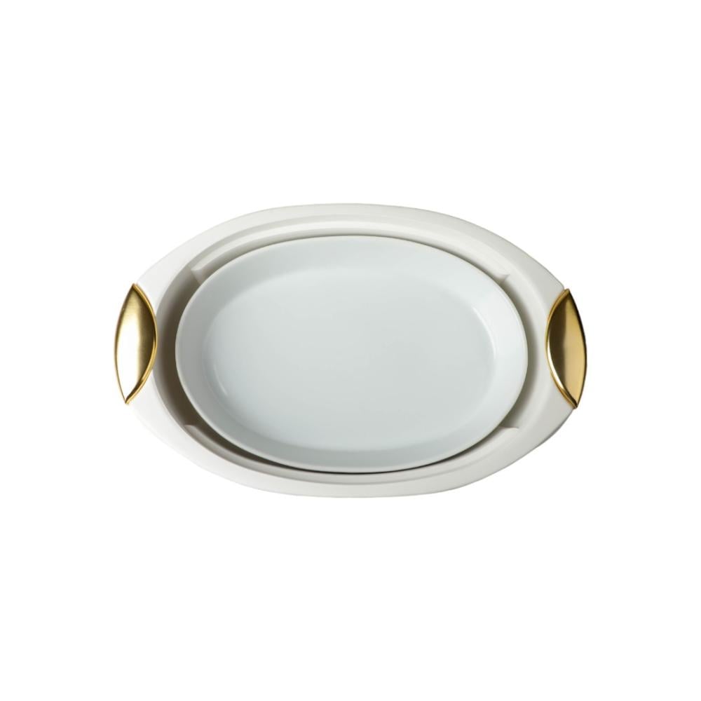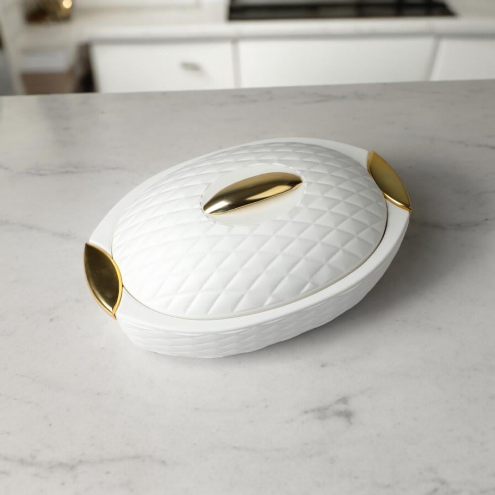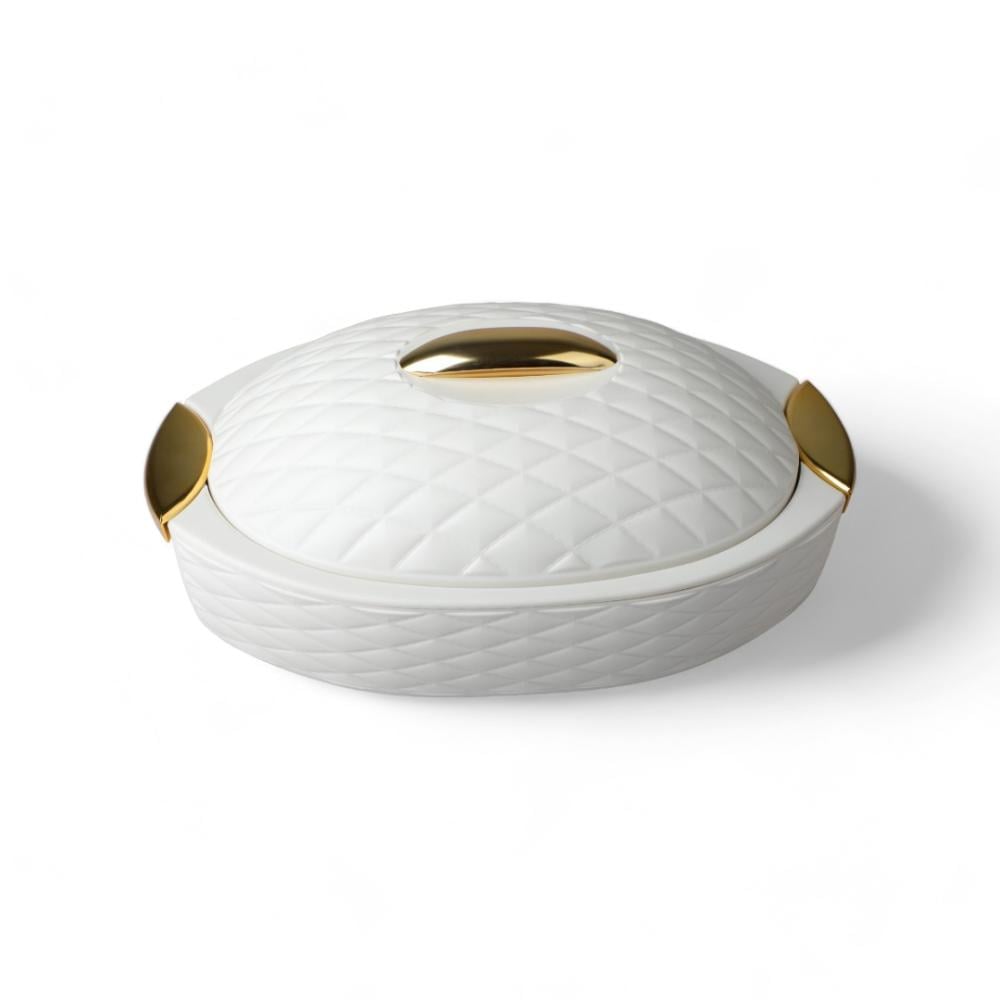 حافظة طعام بيضاوي لون أبيض ذهبي مقاس 41سم