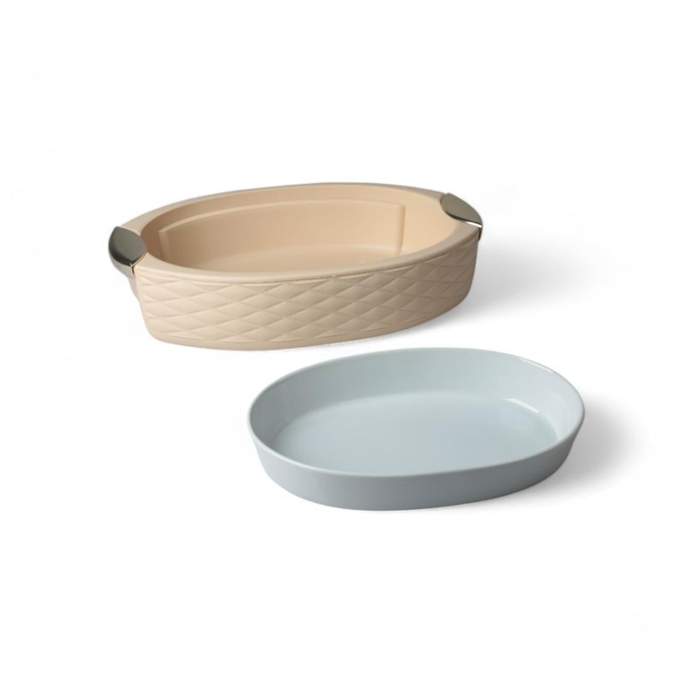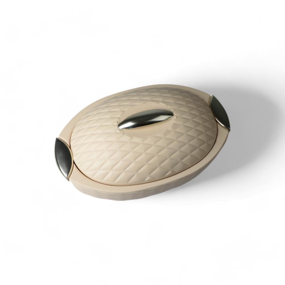 حافظة طعام بيضاوي لون بيج فضي مطفئ مقاس 45 سم