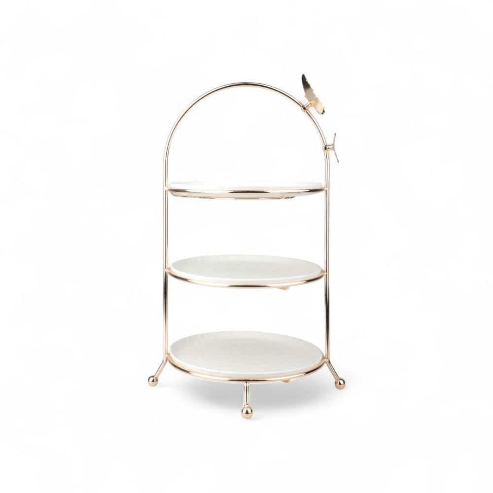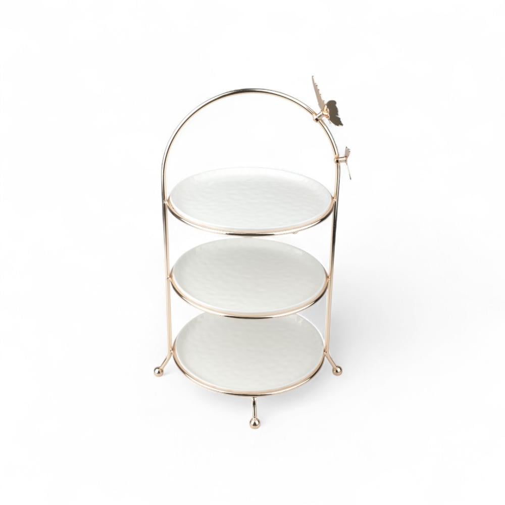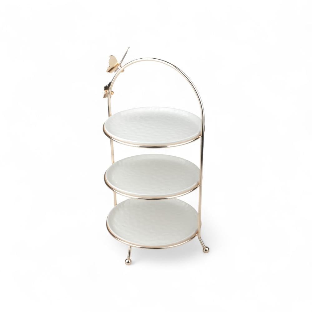 شيال الفراشة مدور الشكل 3 طبق بورسلان من سوليتير، اللون ذهبي الإرتفاع 27 سم