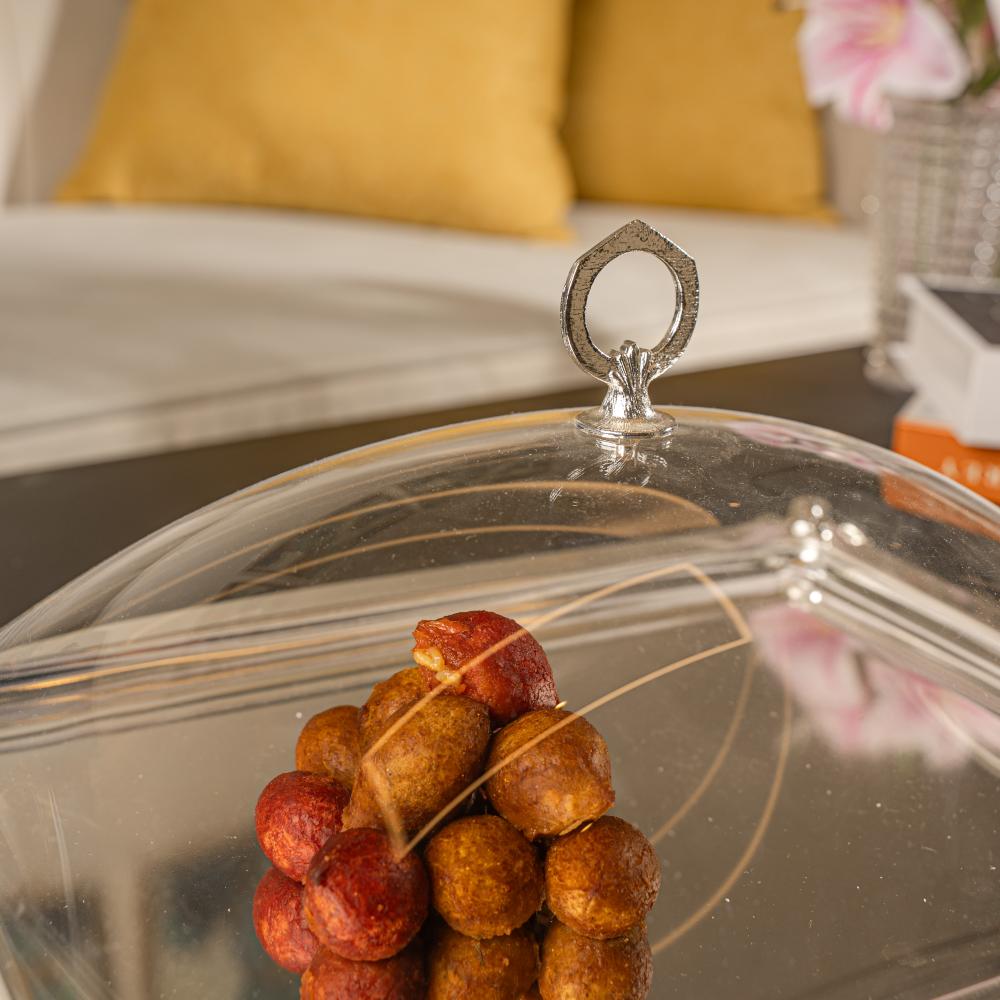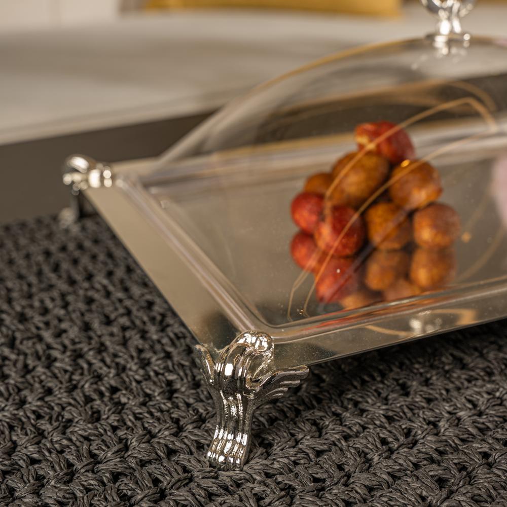 صحن كيك فوبي بغطاء أكريليك من سوليتير، اللون فضي