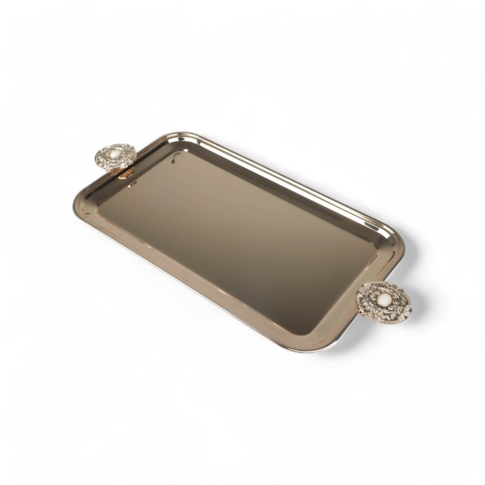 استمتعوا بفخامة التقديم مع صينية الكوين، والتي تجمع بين التصميم الكلاسيكي الأنيق والجودة العالية. مصنوعة بعناية فائقة من مواد معدنية متينة، هذه الصينية مثالية لتقديم مختلف الأطباق والمشروبات في المناسبات الخاصة والتجمعات العائلية.