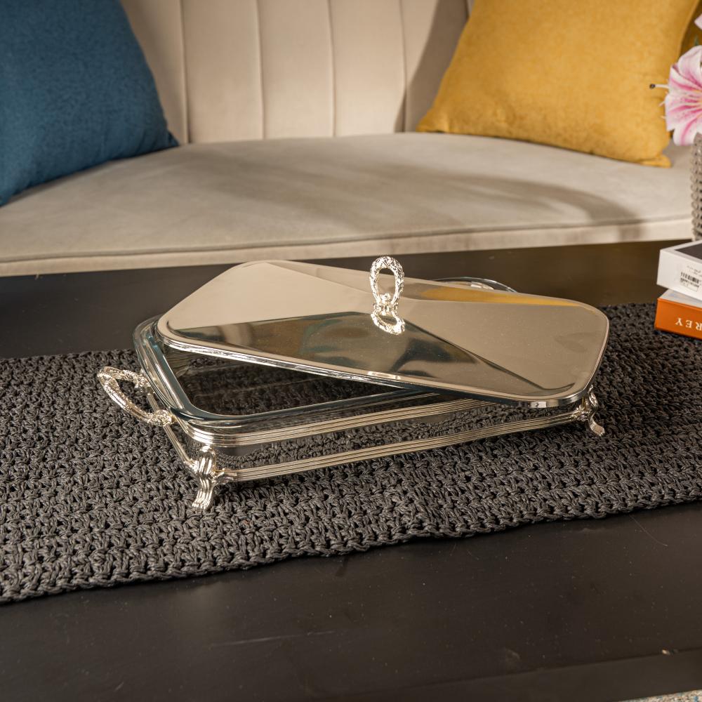 صينية فوبي بغطاء من سوليتير, اللون فضي، 3 لتر