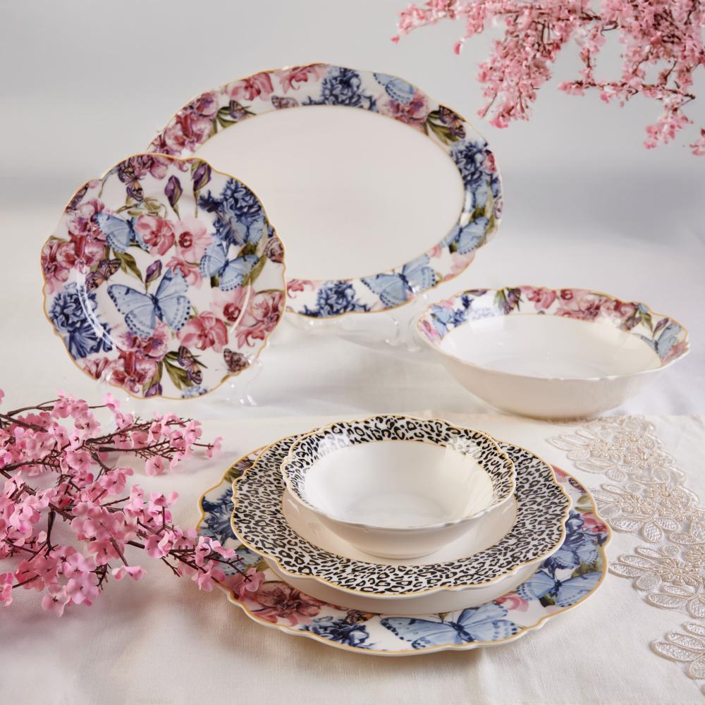 تألقي بسفرة راقية تجمع العائلة على مائدة منزلك بإستخدامك أطقم الطعام الفاخرة المصنوعة من البورسلان الذي يعطي مظهرًا أنيقًا وراقيًا على المائدة