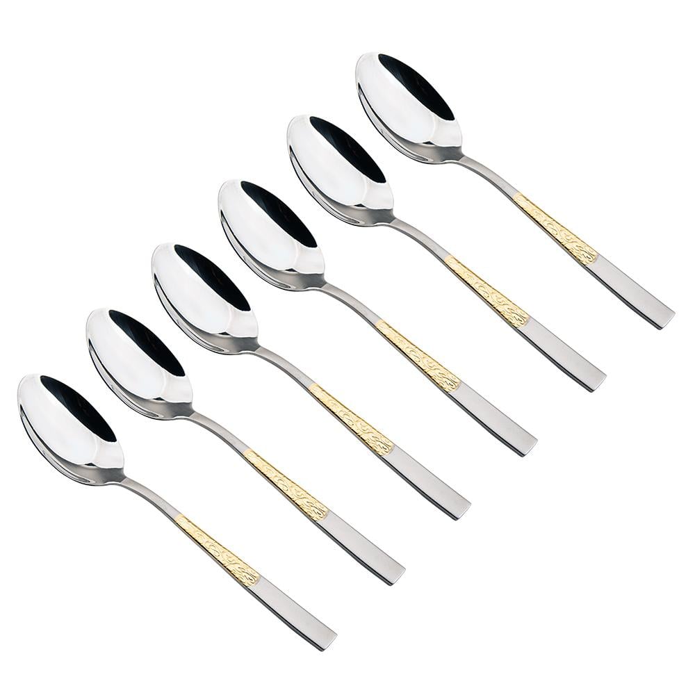 طقم ملاعق حلا ستانلس ستيل من بيستر بلون ذهبي وفضي , 6 قطعة