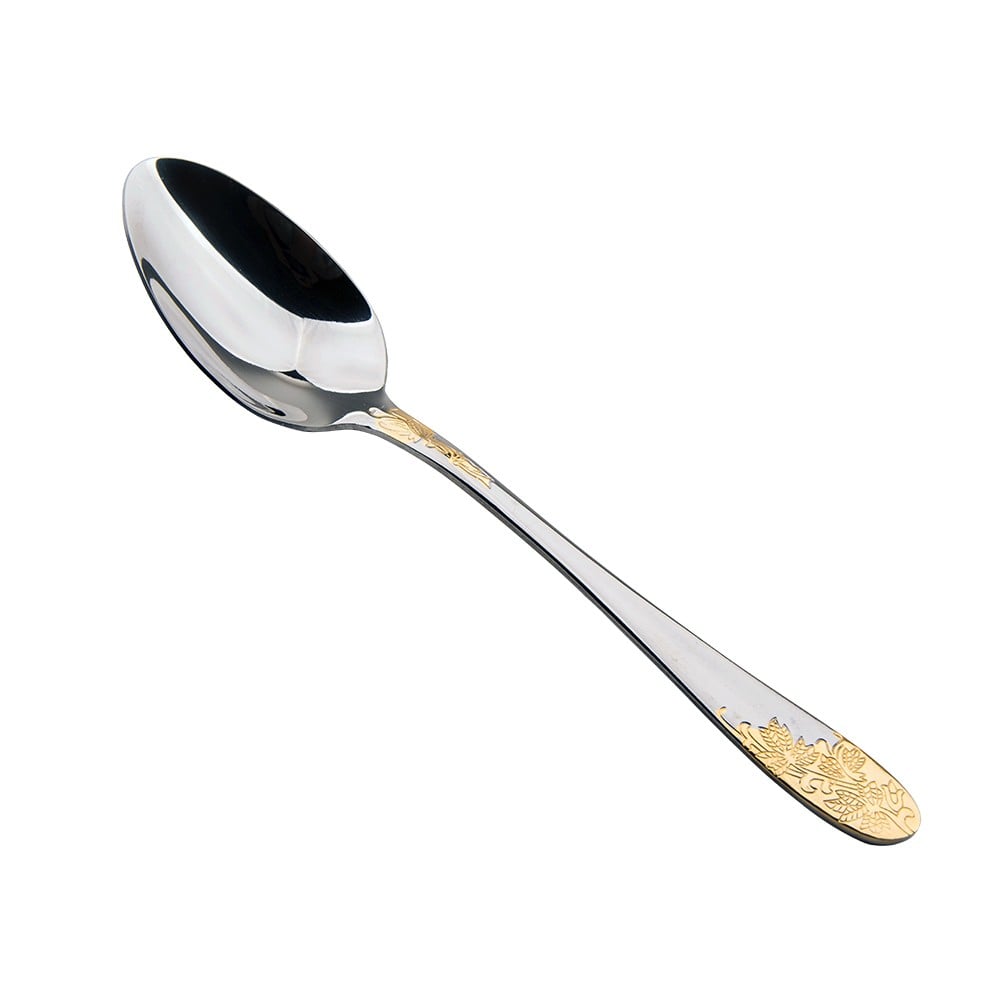طقم ملاعق حلا ستانلس ستيل من بيستر 6 قطع، لون فضي بنقوش ذهبي