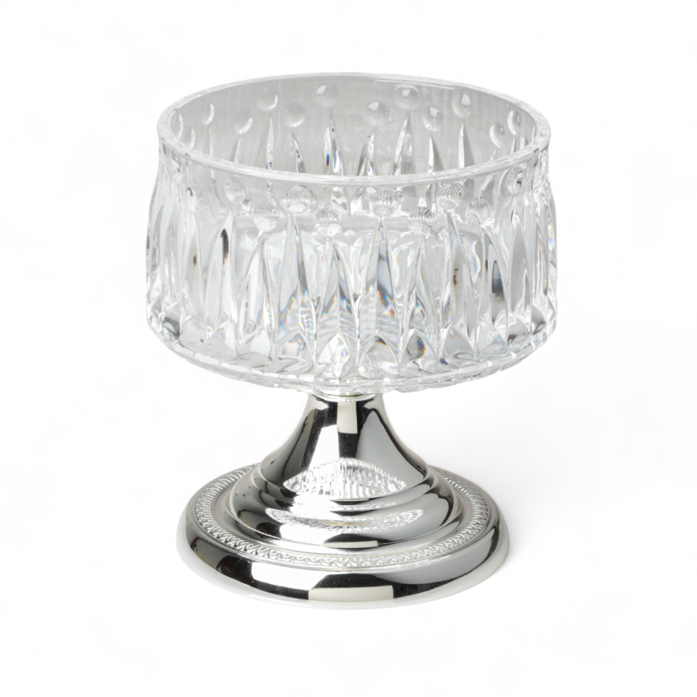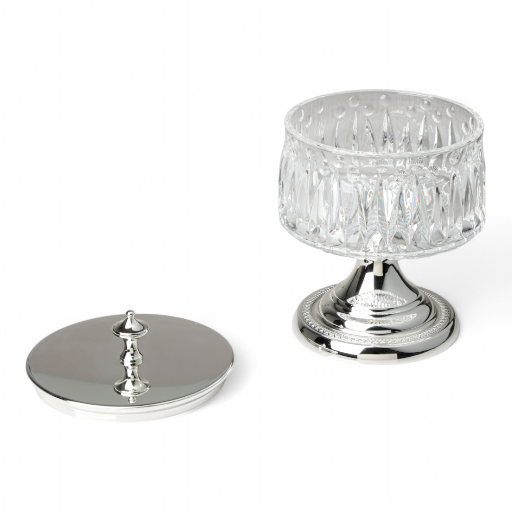 علبة أكريليك من سوليتير فضي بقاعدة, حجم كبير الارتفاع 20سم القطر 16 سم