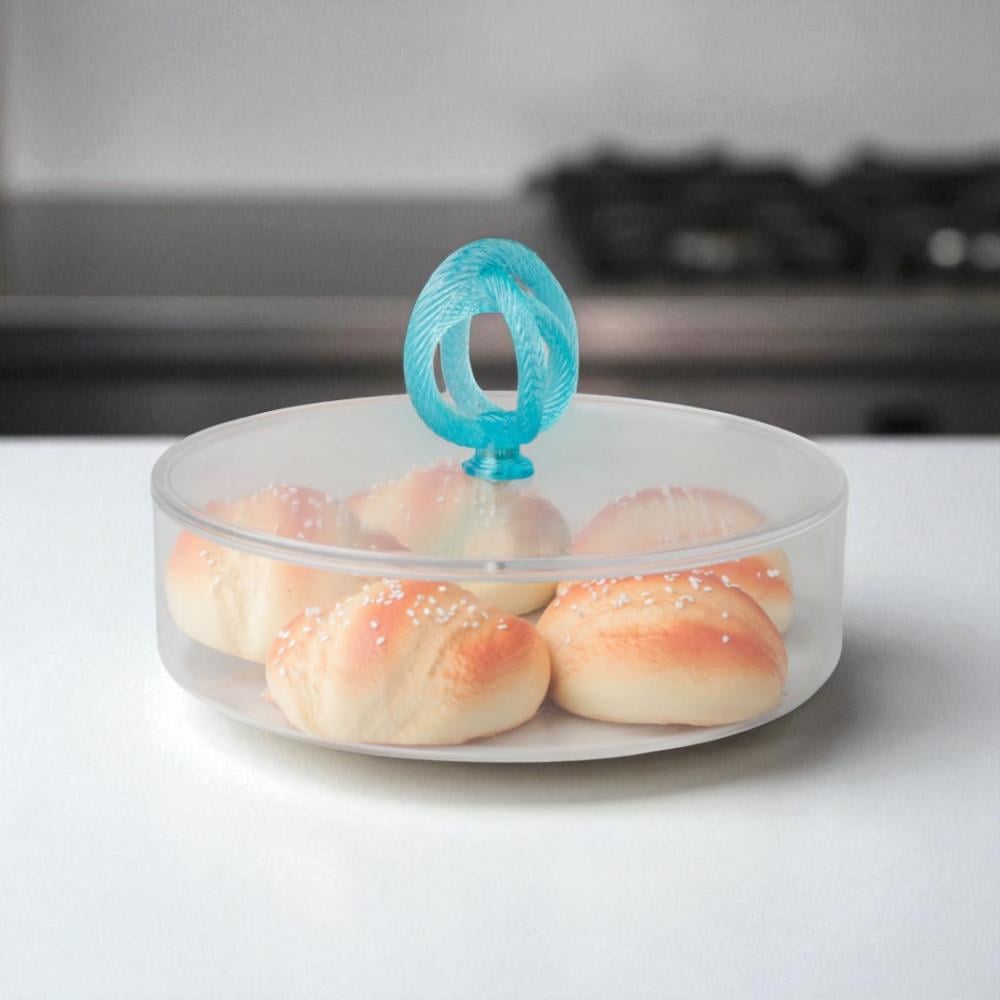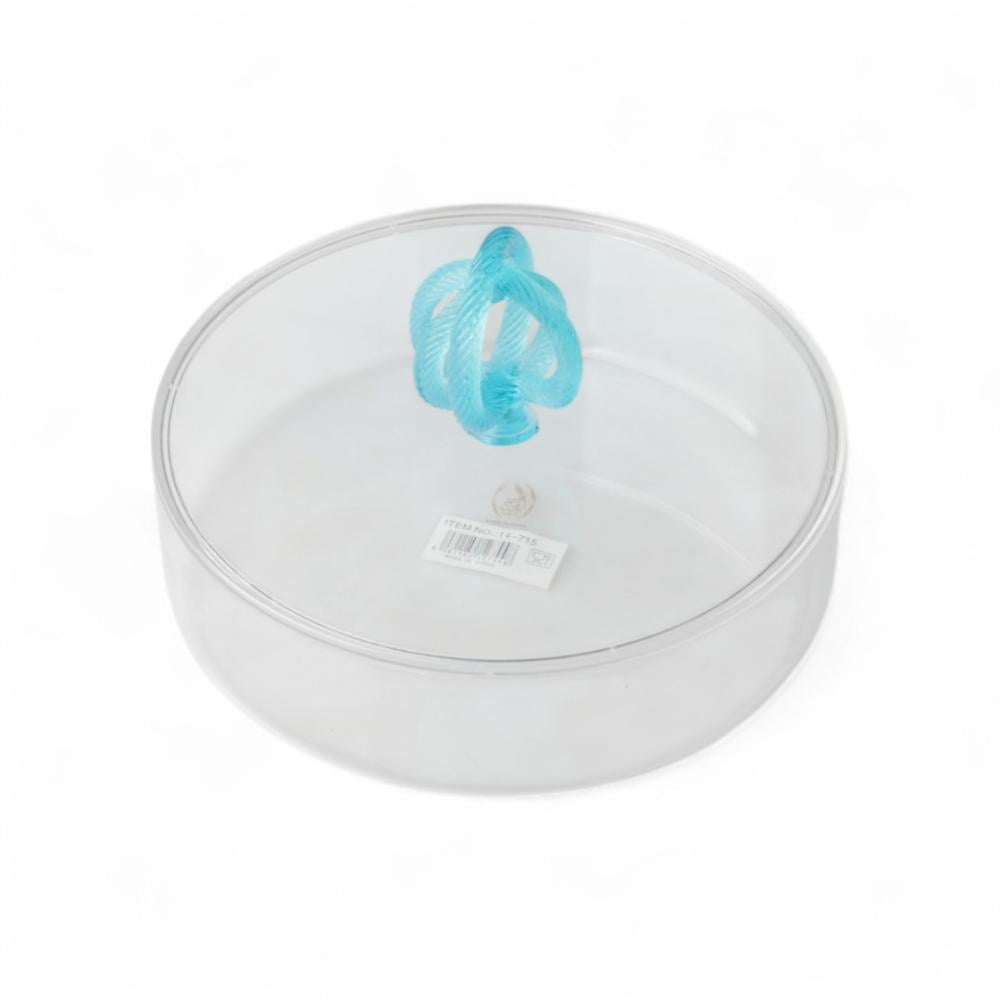 علبة تقديم سنيك أكريليك من سوليتير، لون شفاف وسماوي، حجم وسط دائري، القطر 25 سم